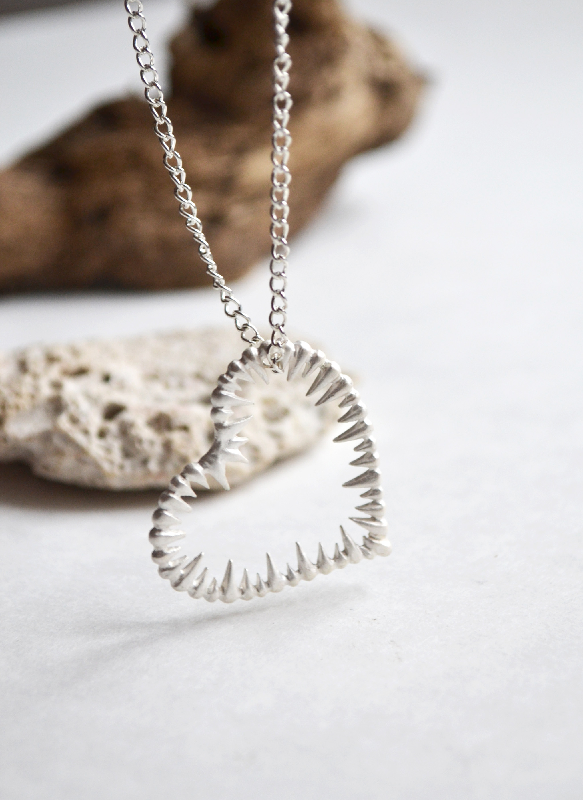 Heart Necklace, Valentines Day, Spike Heart Necklace, Silver Heart