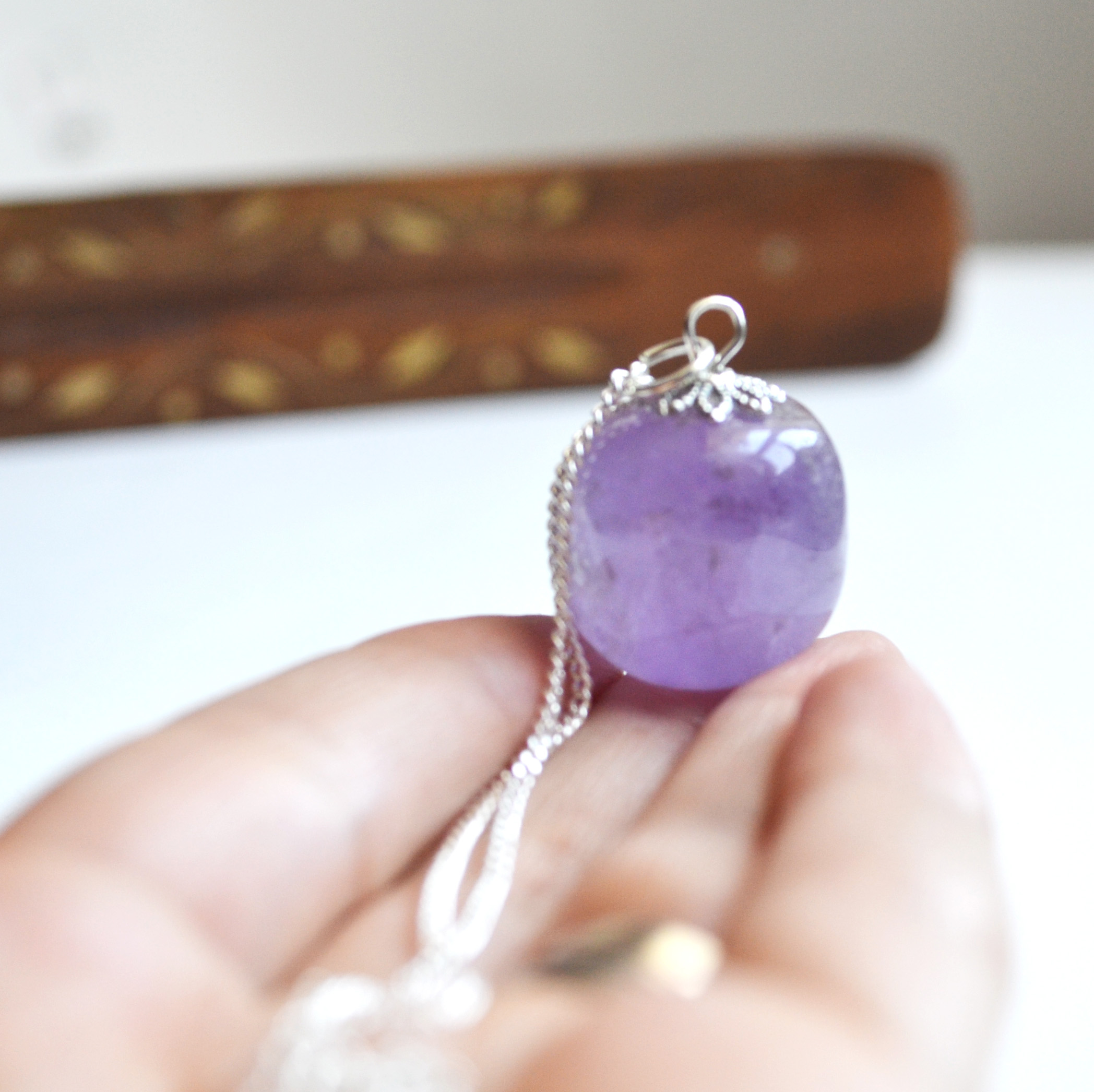 Tumbled Amethyst Necklace, Tumbled Stone Necklace for Her, Purple Stone Necklace for Spring, Canadian Jewelry Shop Simple Stone Necklace