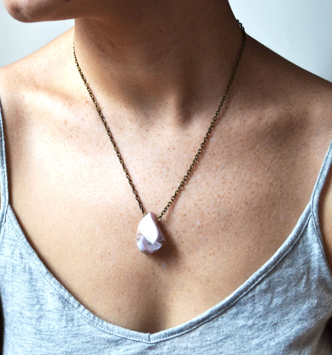 Free Form Stone Necklace, Agate Silce Necklace, Natural Earthy Agate Stone Necklace, Botswana Agate Jewelry, Canadian Shop