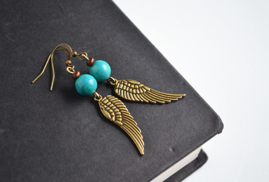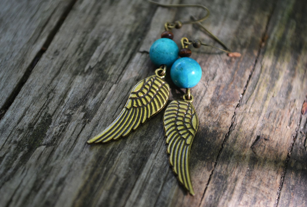Angel Wing Earrings with Turquoise,Guardian Angel,Boho Angel Wing Earrings