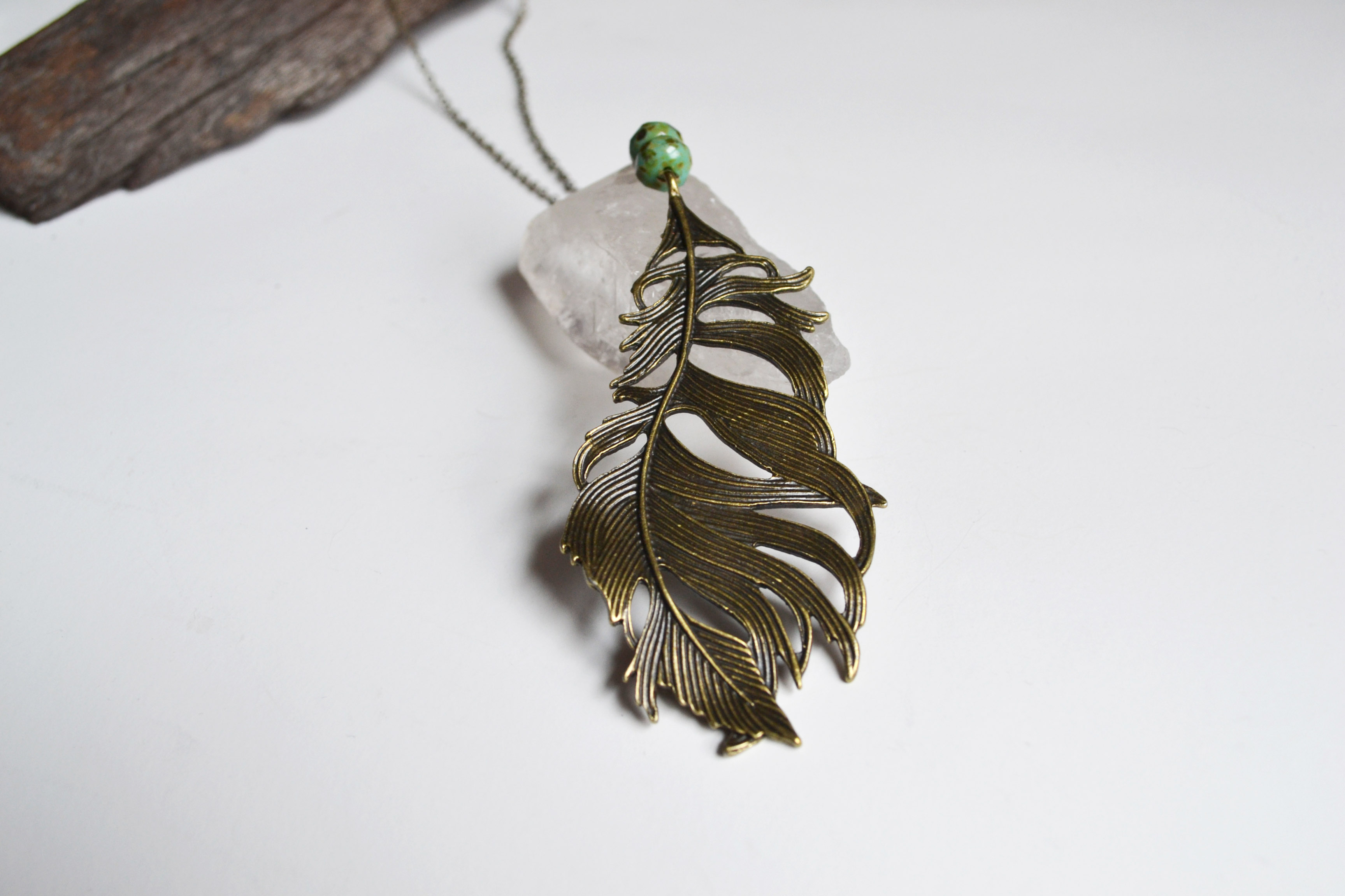 Large Feather Necklace, Bohemian Long Necklace, Long Chain Feather Necklace, Floating Feather, Dreamy Feather