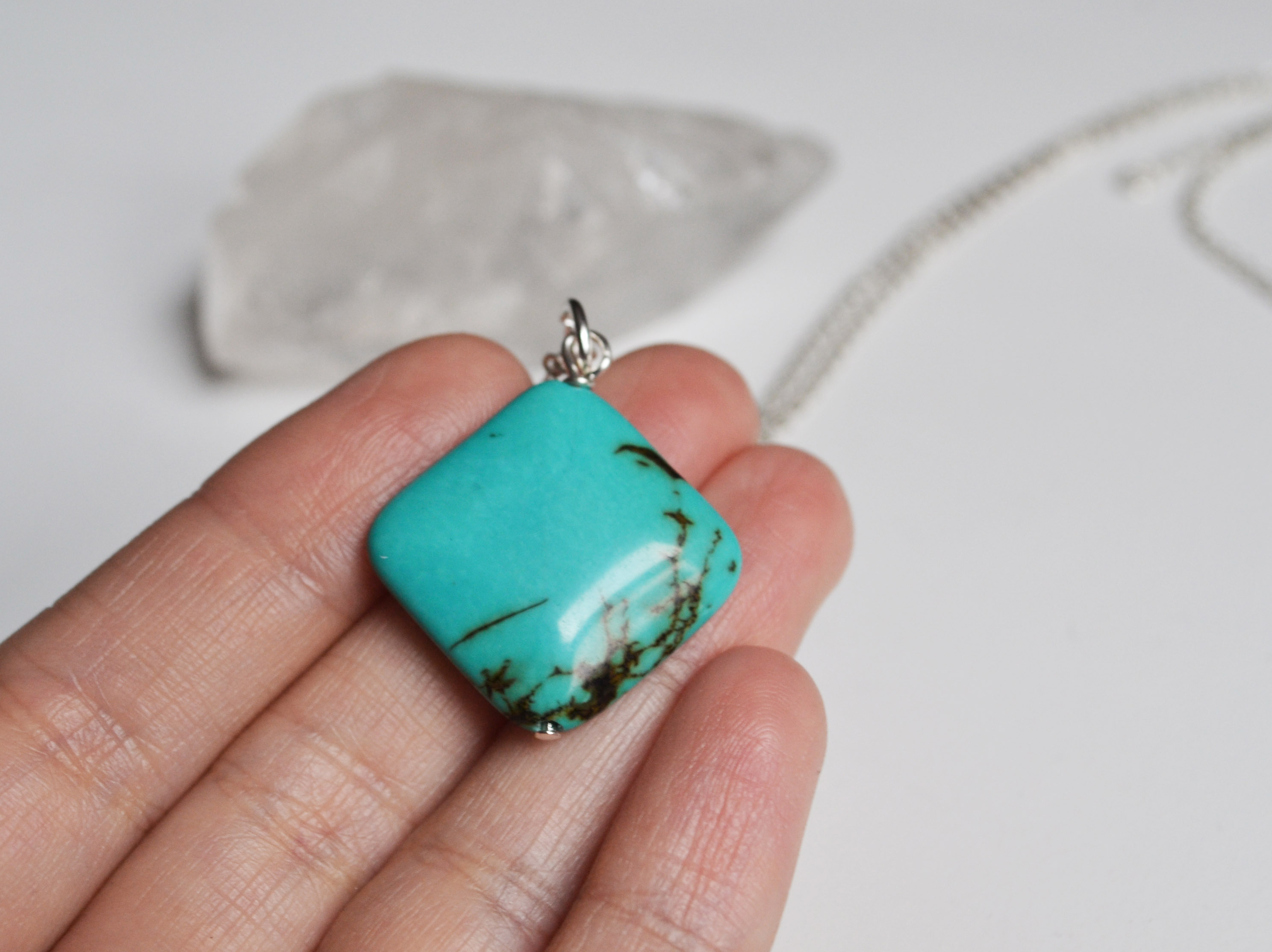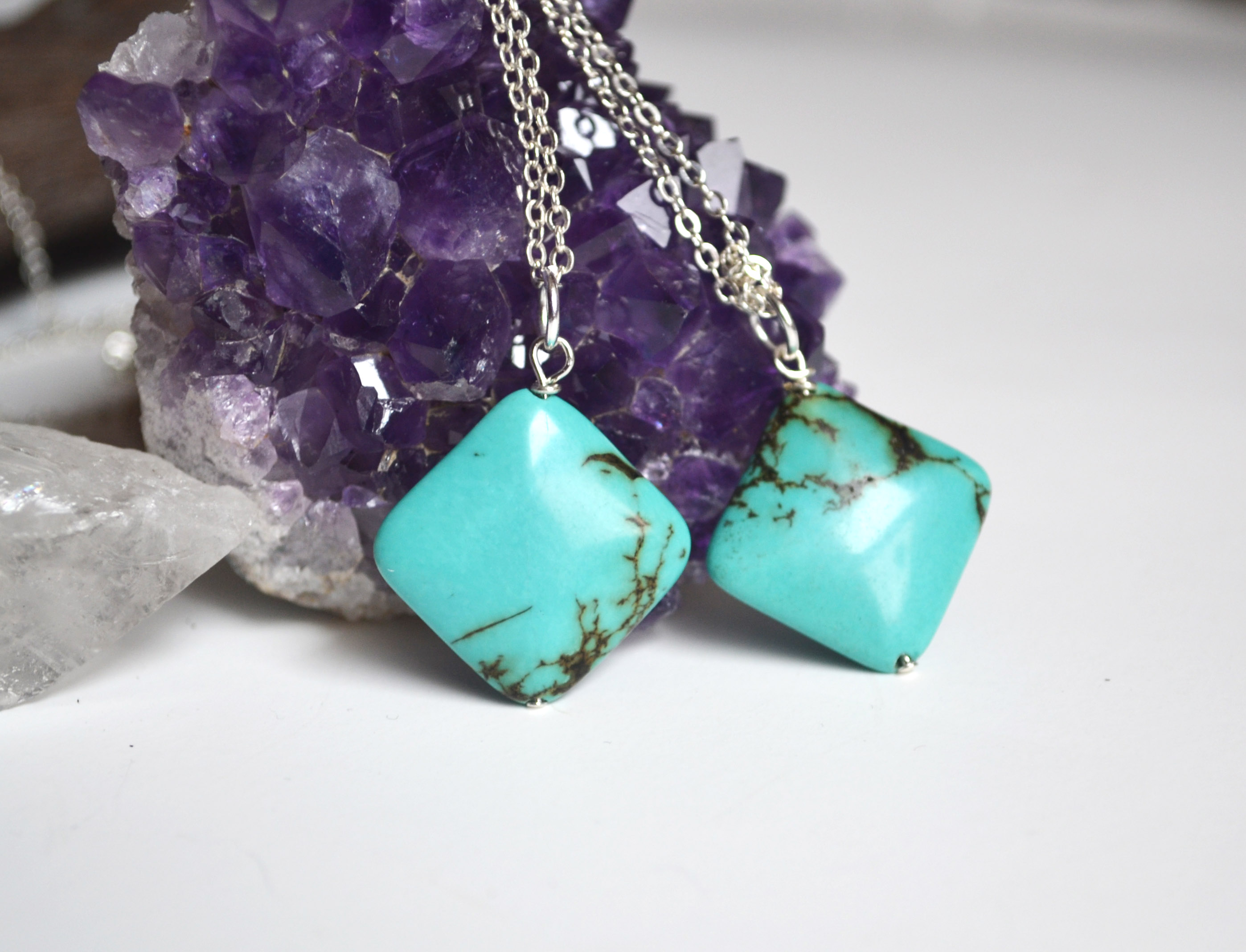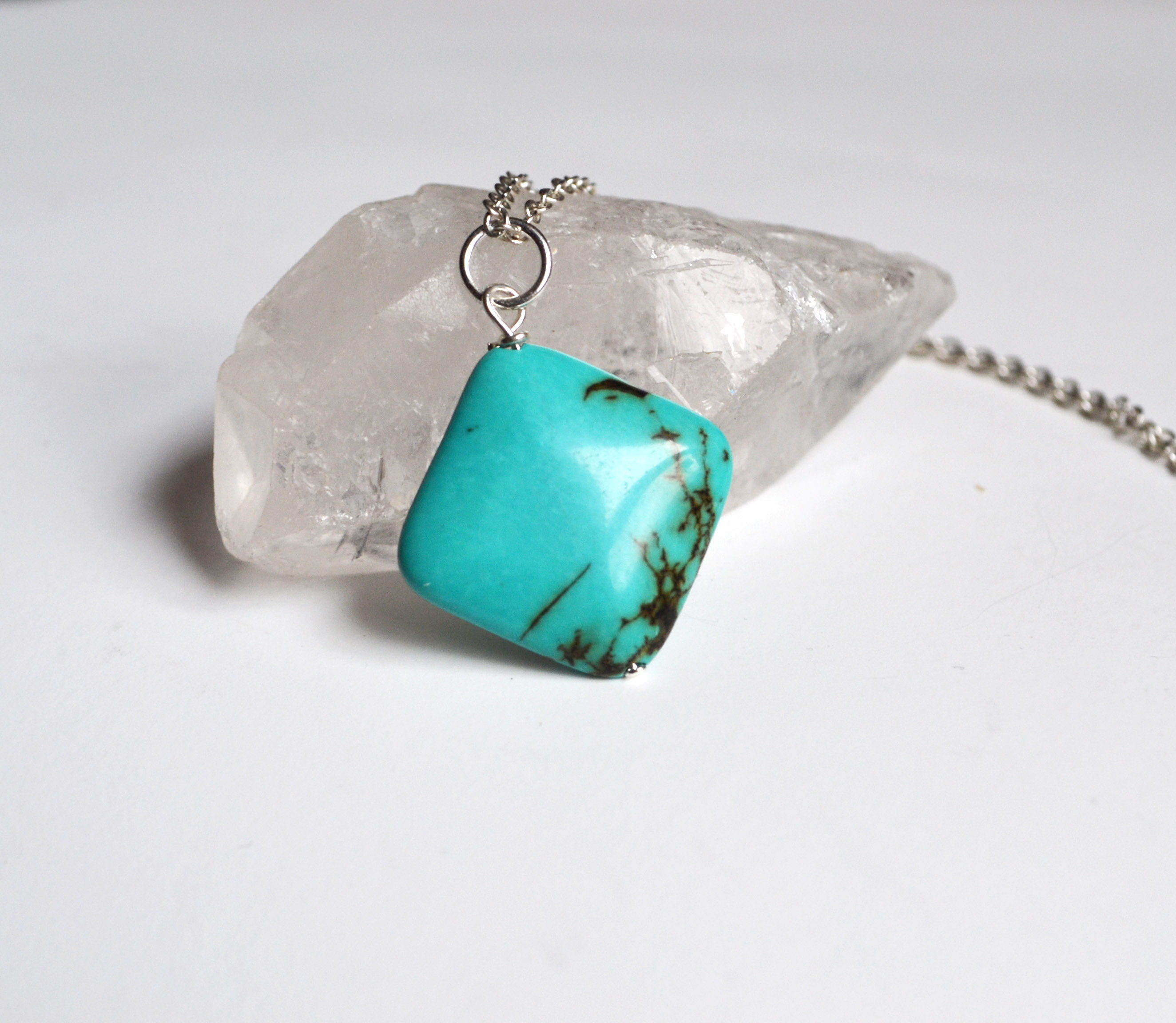 Turquoise Diamond Necklace, Turquoise on Chain, Long Chain and Stone, Turquoise Southwest Necklace, Bohemian