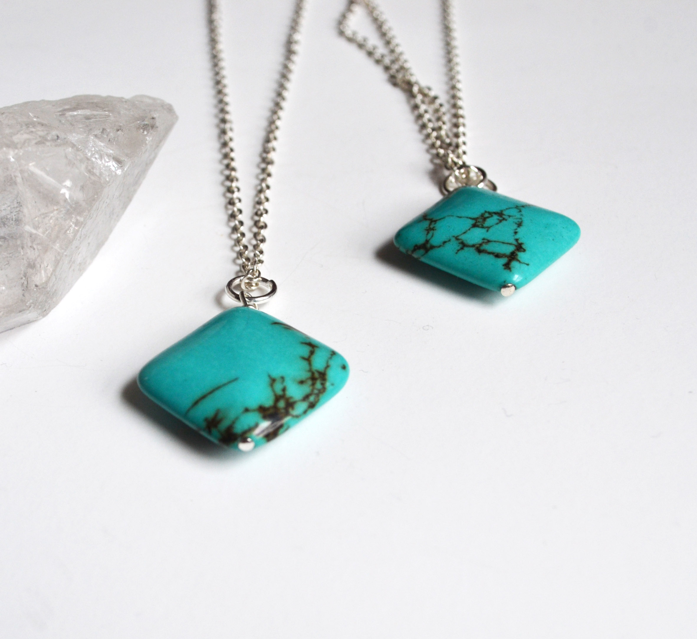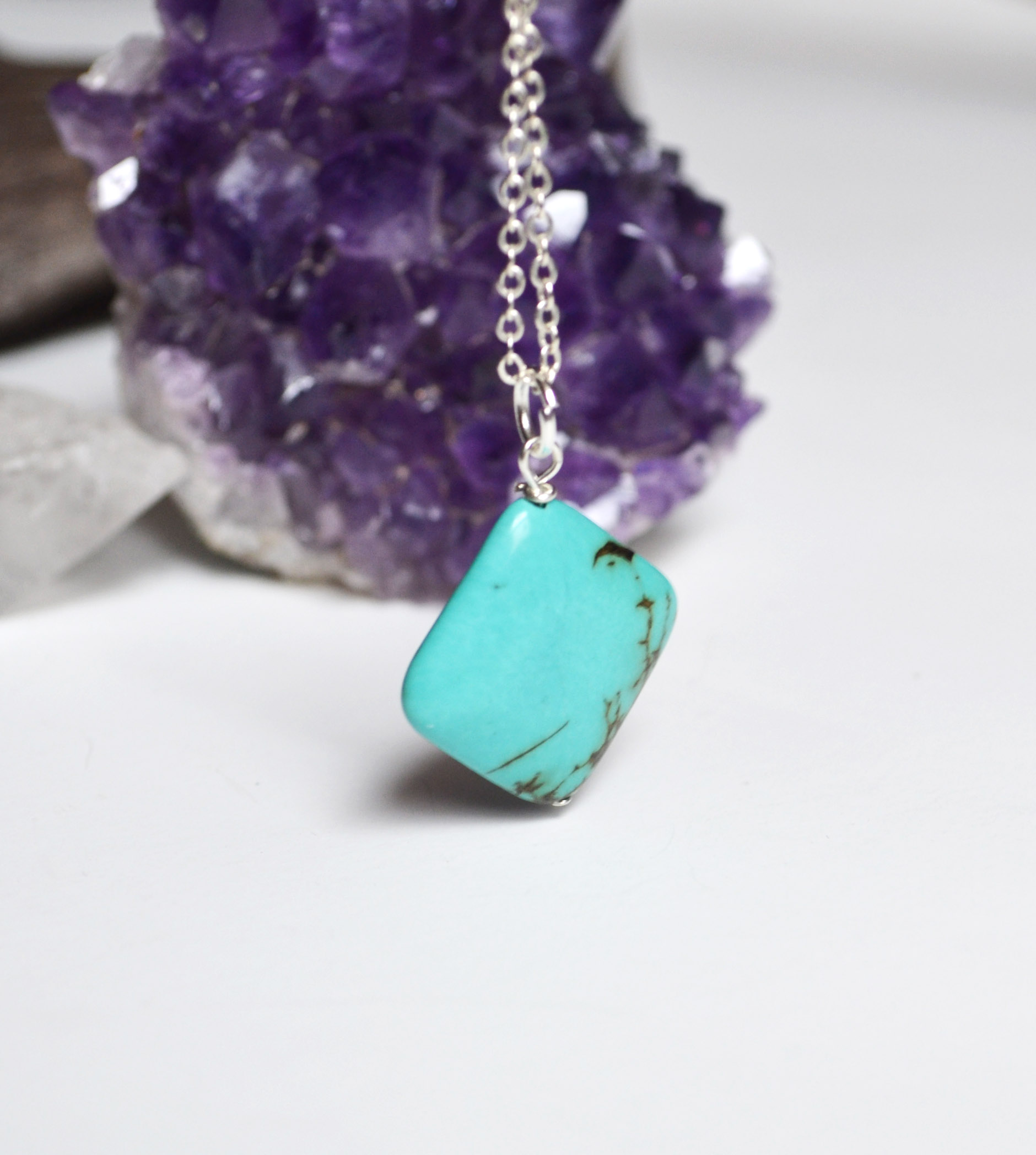 A pretty necklace for any season, this turquoise southwest necklace can be worn long or short. There are two stones to choose from so view all of the pictures and choose your favorite.Leave me a note stating the length you would like the chain to be, otherwise I will send a 24 inch chain.