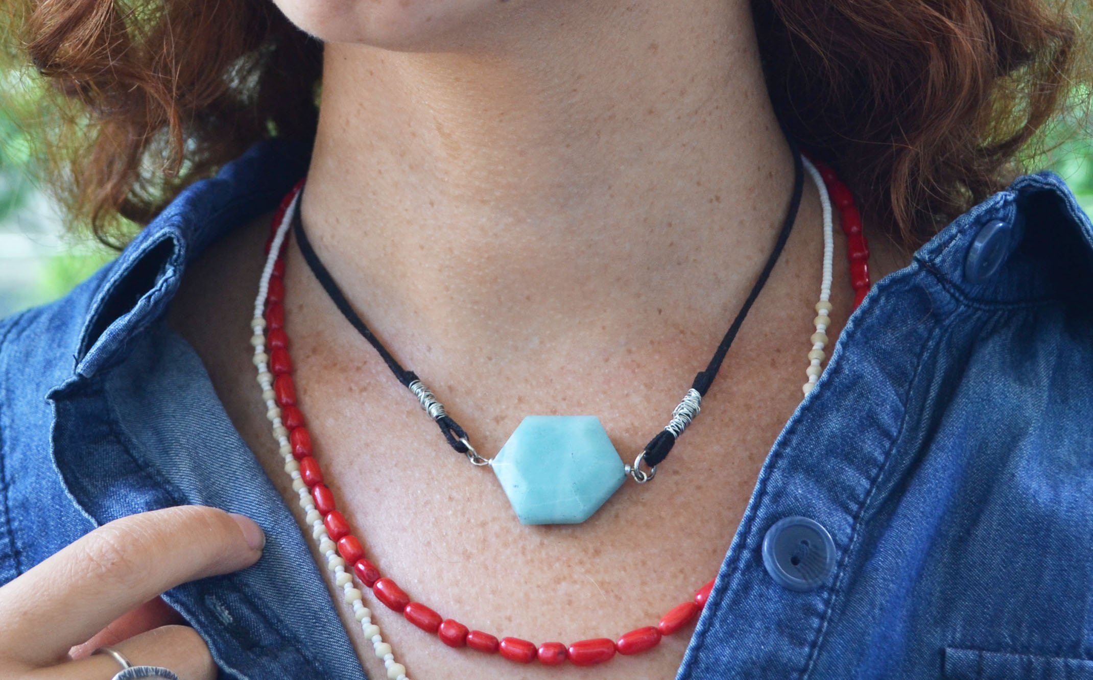 A short summer necklace to wear on it's own or layered with other necklaces like shown in one of the photos. Please view all of the photos for details.