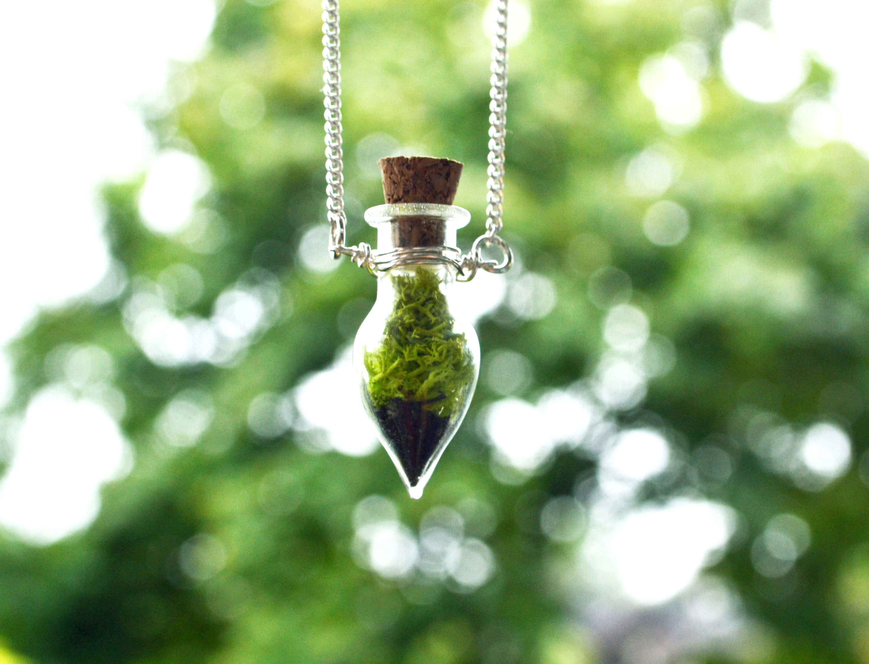 Moss Necklace, Spring Jewelry, Glass Terrarium Necklace, Miniature Terrarium, Botanical Jewelry, Moss Jewelry, Plant Jewelry, Live Plant