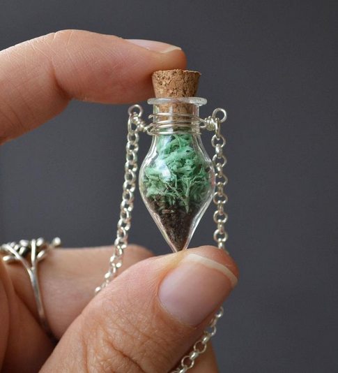 Easy Care for you Moss: Keep it out of prolonged direct sunlight (moss likes to be in a darker cooler place), as well as open the cork lid to give it air every 2-3 months. It is best to leave it in the fridge for an hour or two for moisture every 2-3 months. I have another moss necklace in my shop, so check it out.