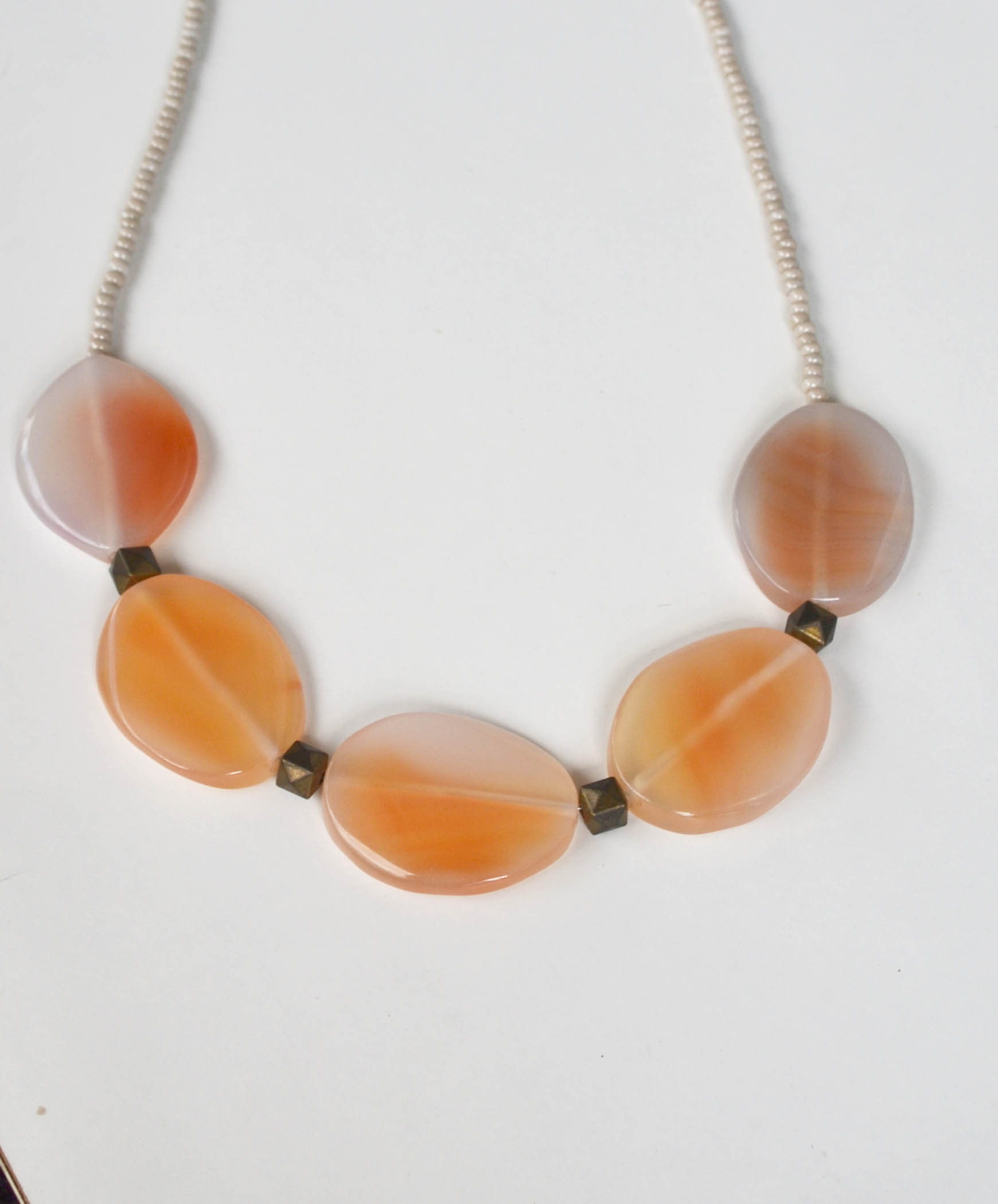 Chunky Agate Necklace, Statement Necklace, Peach Stone Necklace, Christmas Gifts, Gifts for her, Large Stone Necklace