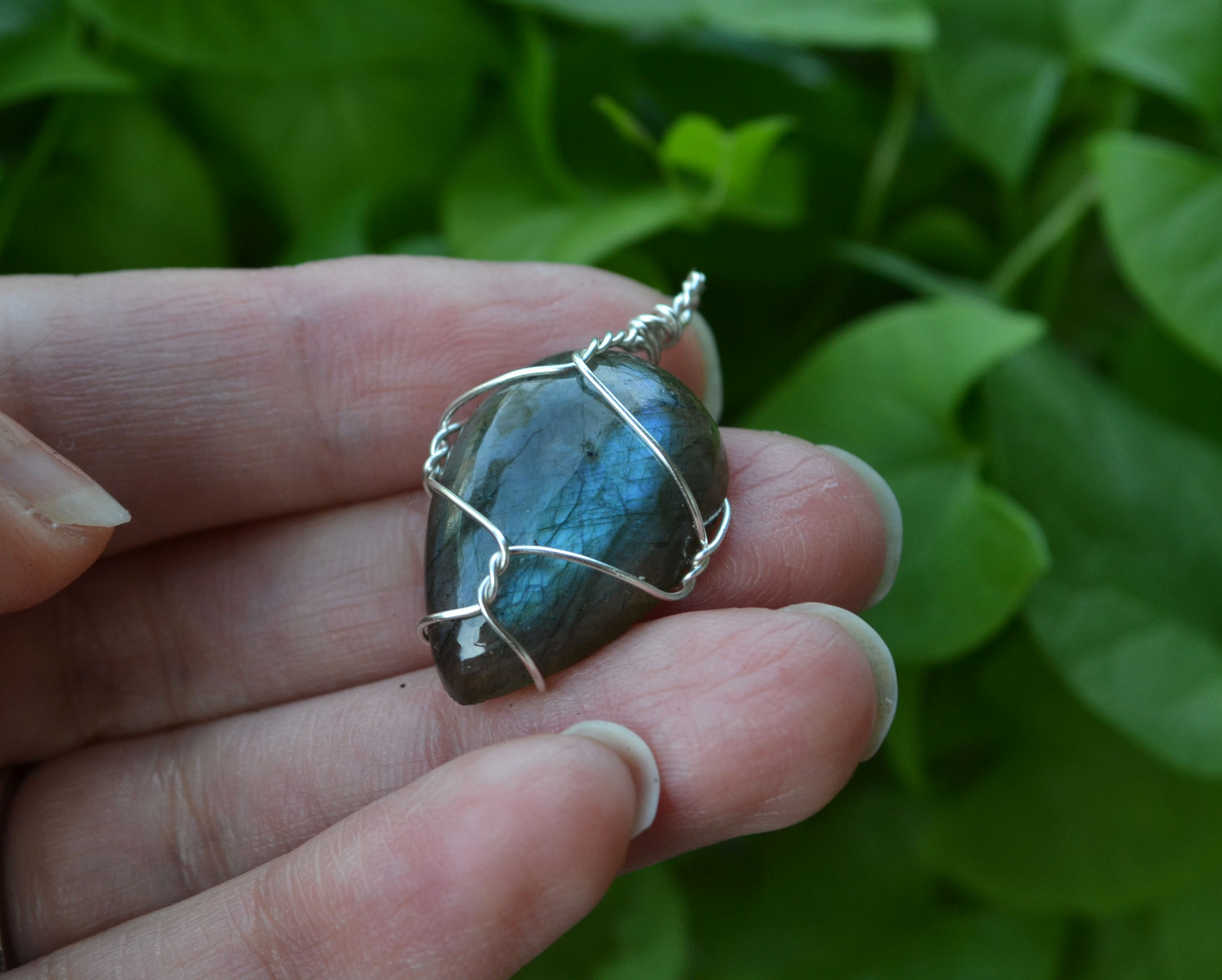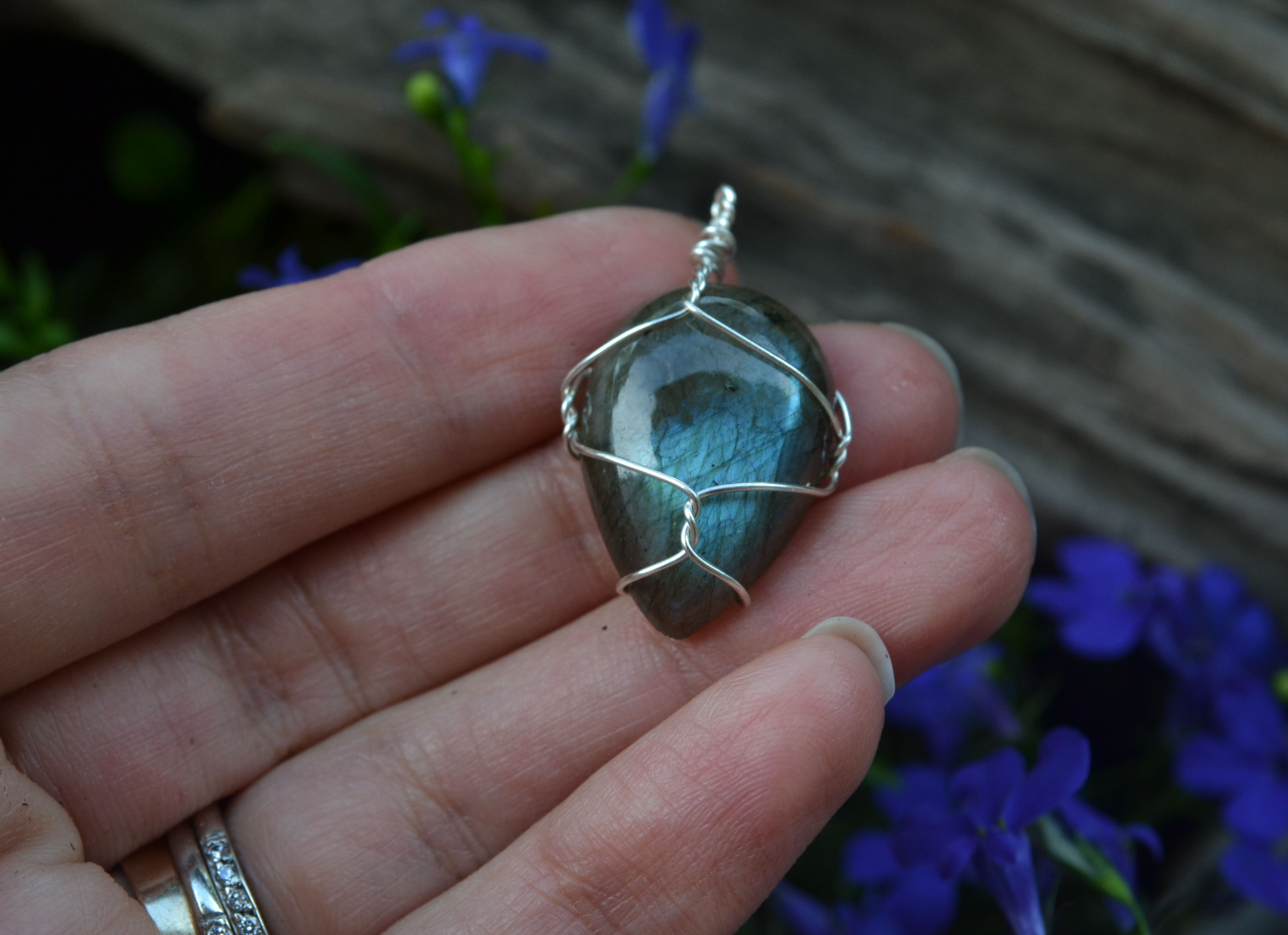 A beautiful small blue teardrop Labradorite that will look great as a necklace or choker. This pendant will come with a black cotton cord but if you need a silver plated chain, leave me a note.
