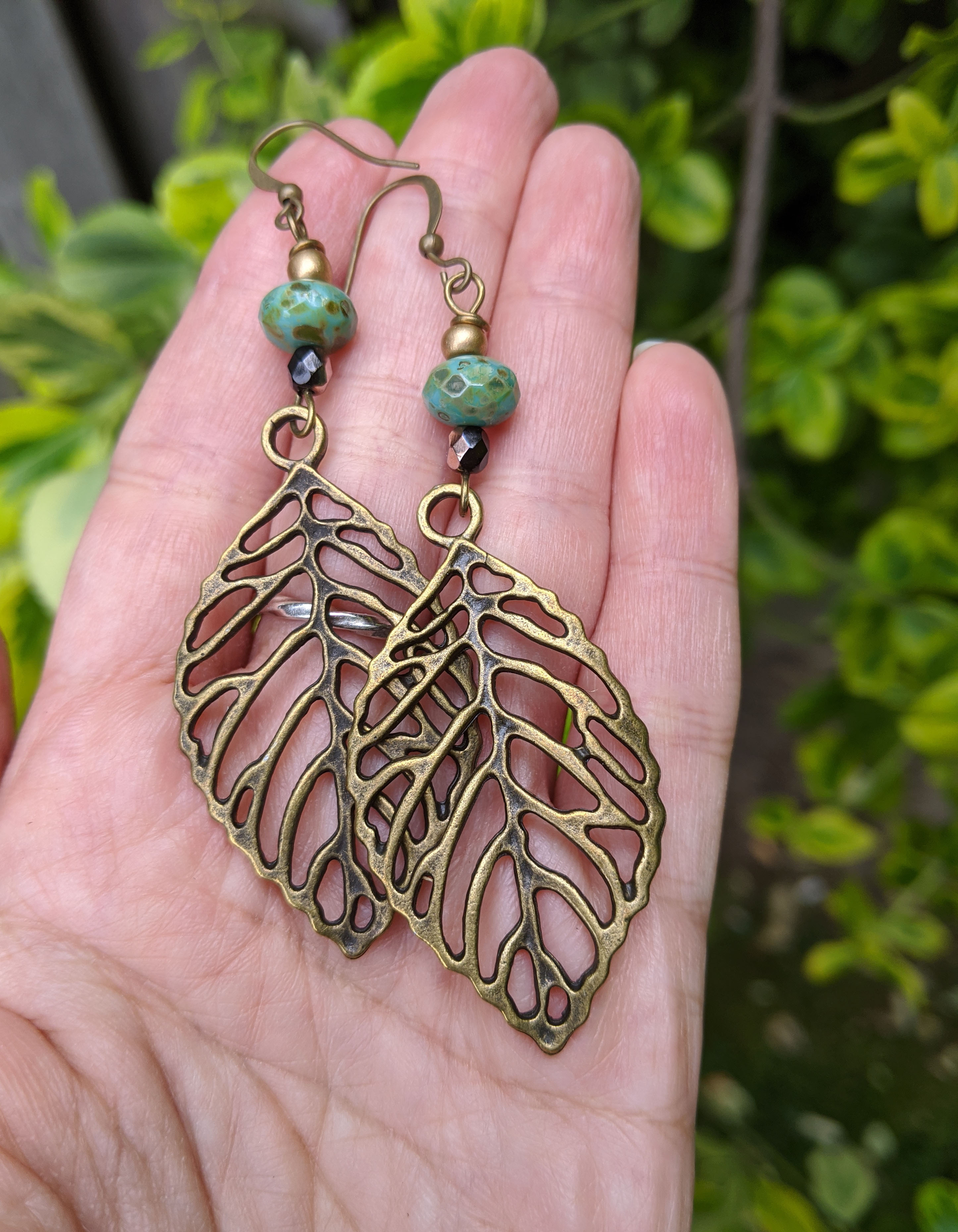 Boho Leaf Earrings, Large Leaf Earrings, Earrings for Summer, Nature Earrings, Long Boho Earrings, Canadian Shop