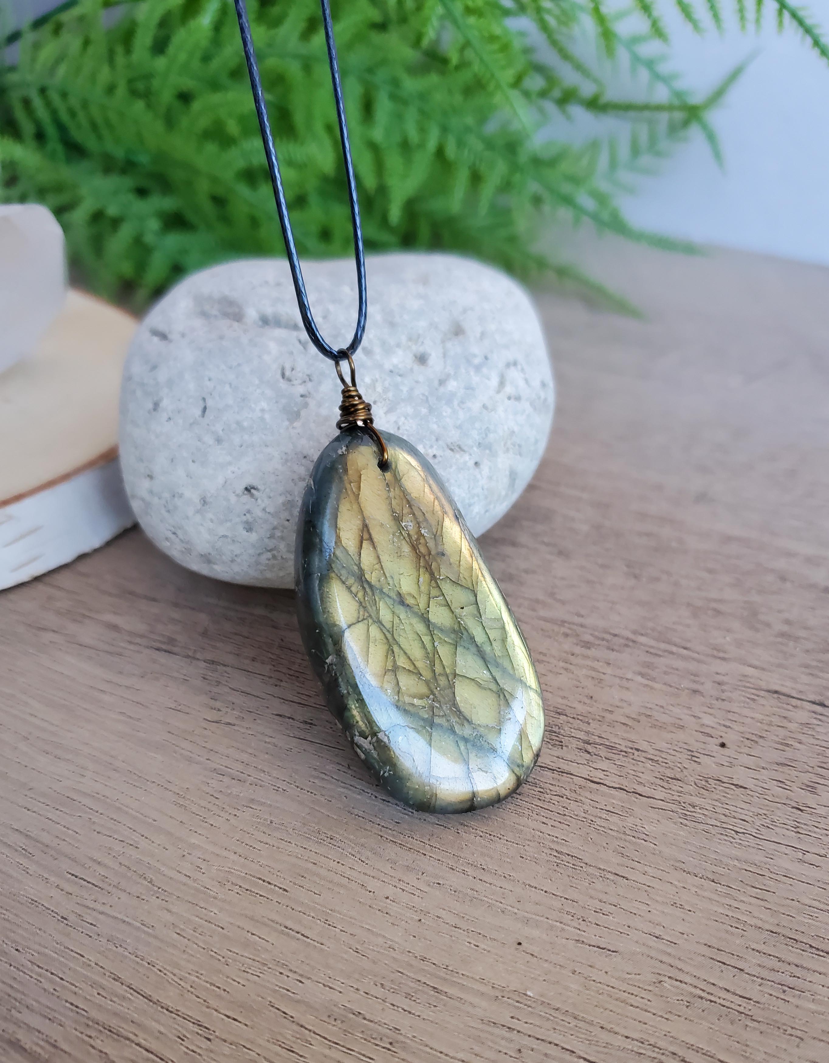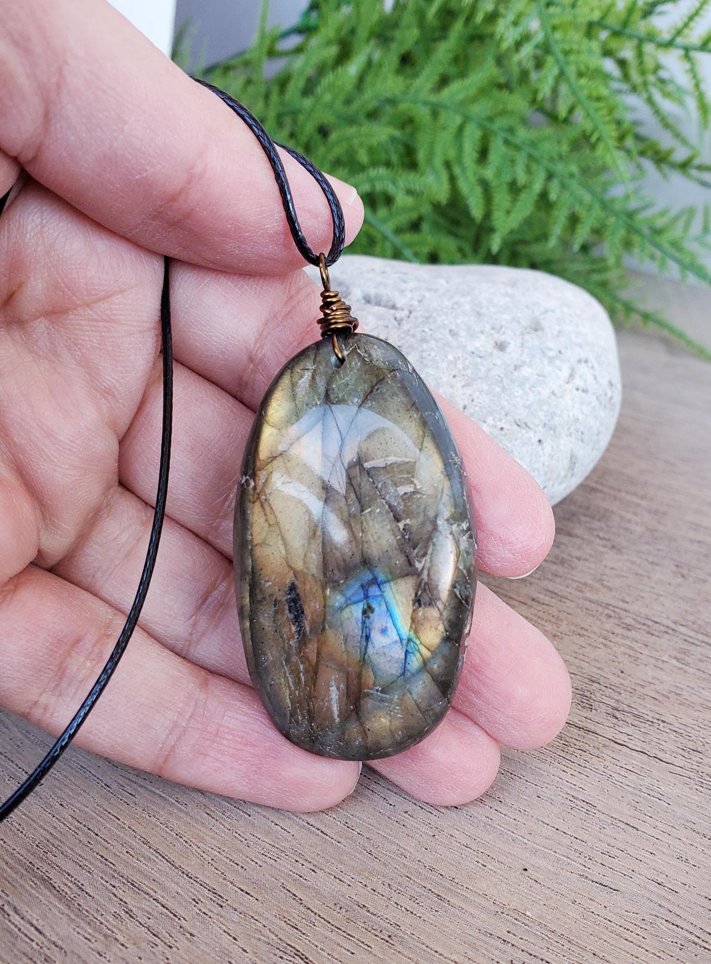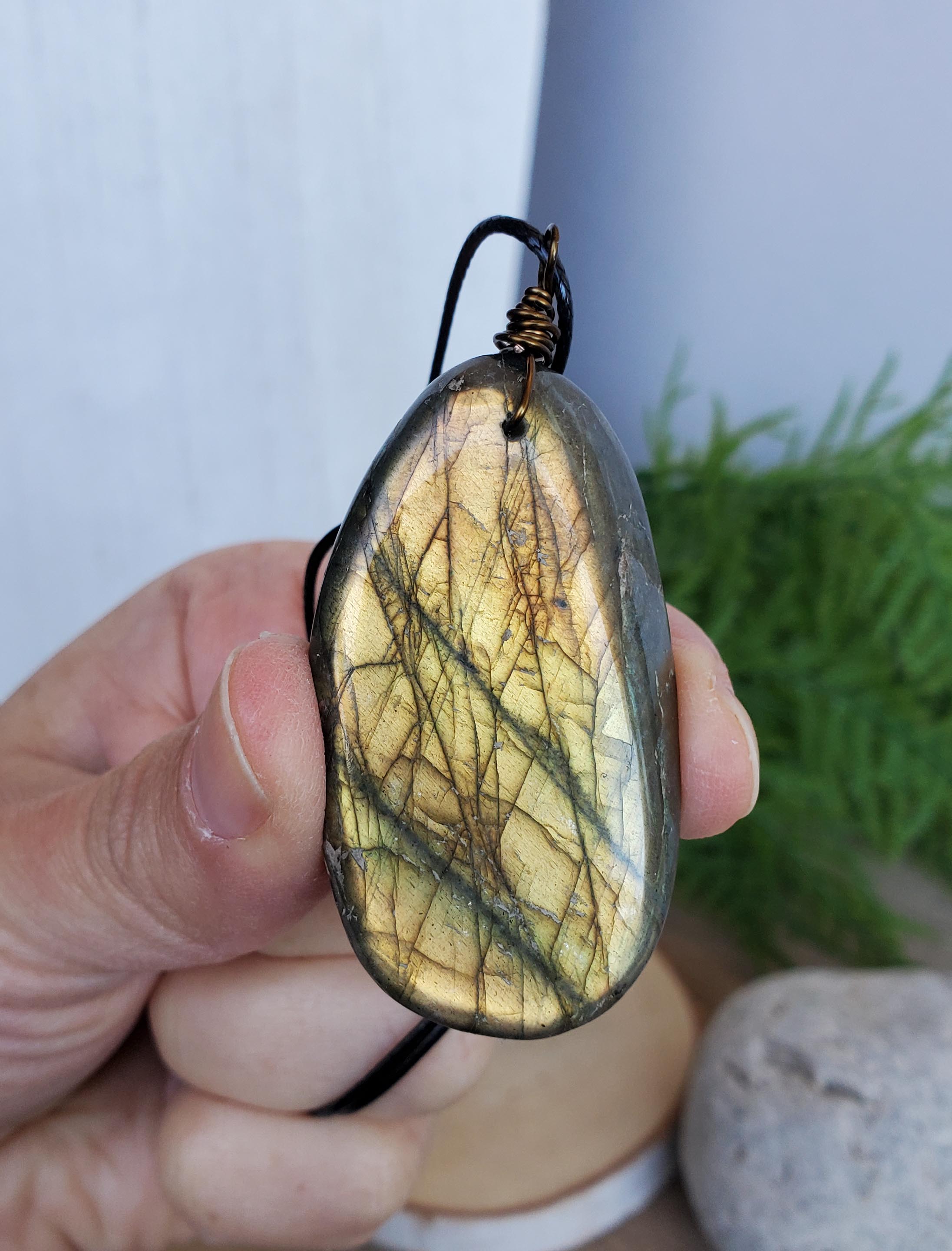 Red Gold Labradorite Necklace, Jewelry for Spring Crystal Gift, Palm Stone Necklace Unisex Jewelry, Canadian Crystal shop