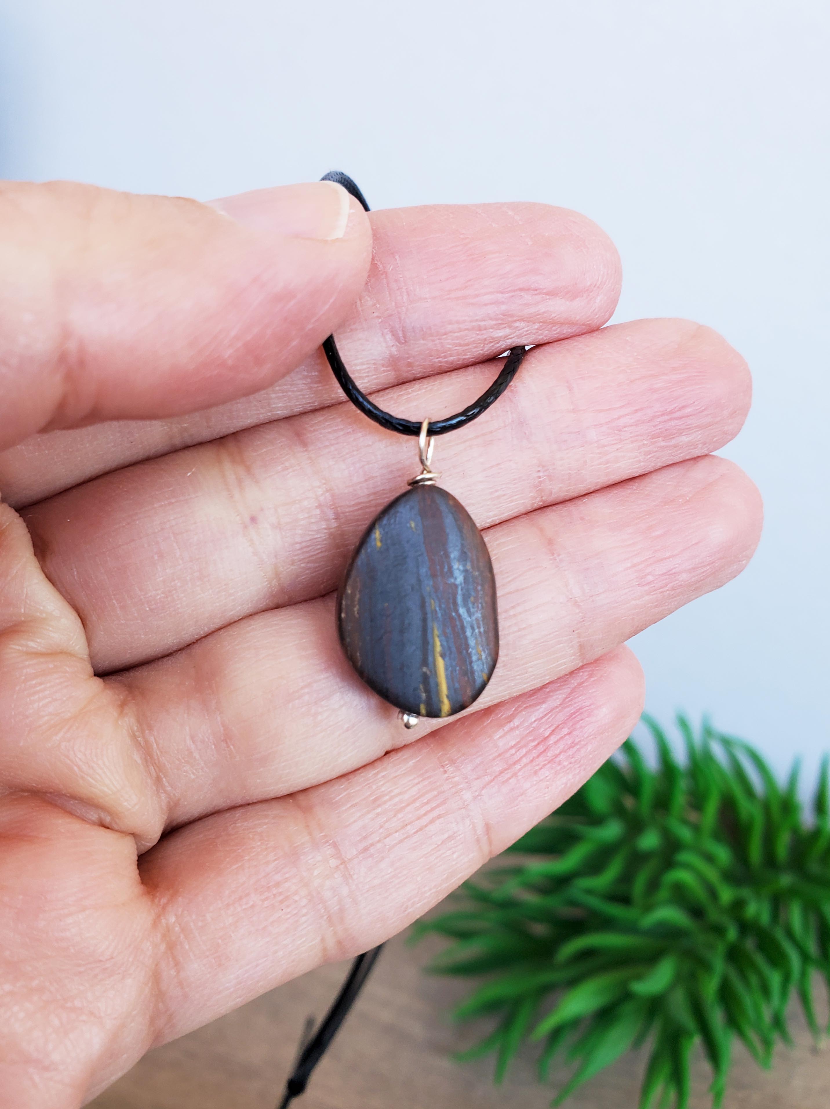 A dark matt Tigers Eye stone Necklace that can be worn throughout the seasons. This stone is small in size and has a matt finish to it. It will come with a silver plated chain or black cotton cord, you choose at checkout. Please view all of the photos for details.