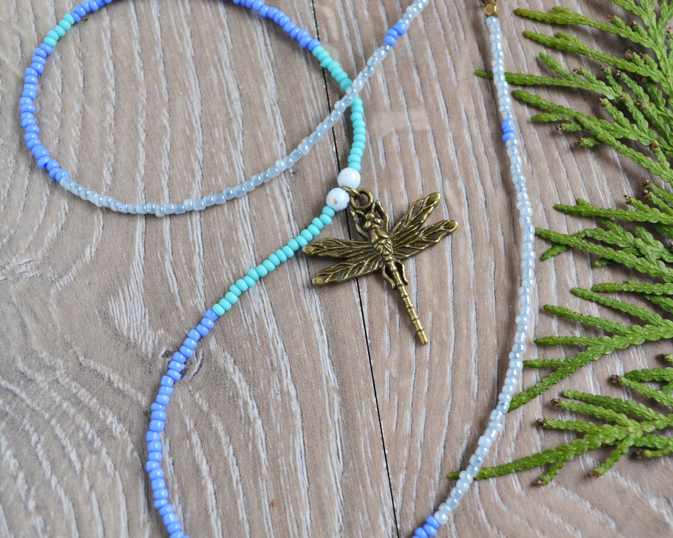 Summertime Dragonfly Necklace, Beaded Ombre Necklace, Dragonfly Jewelry, Canadian Shop