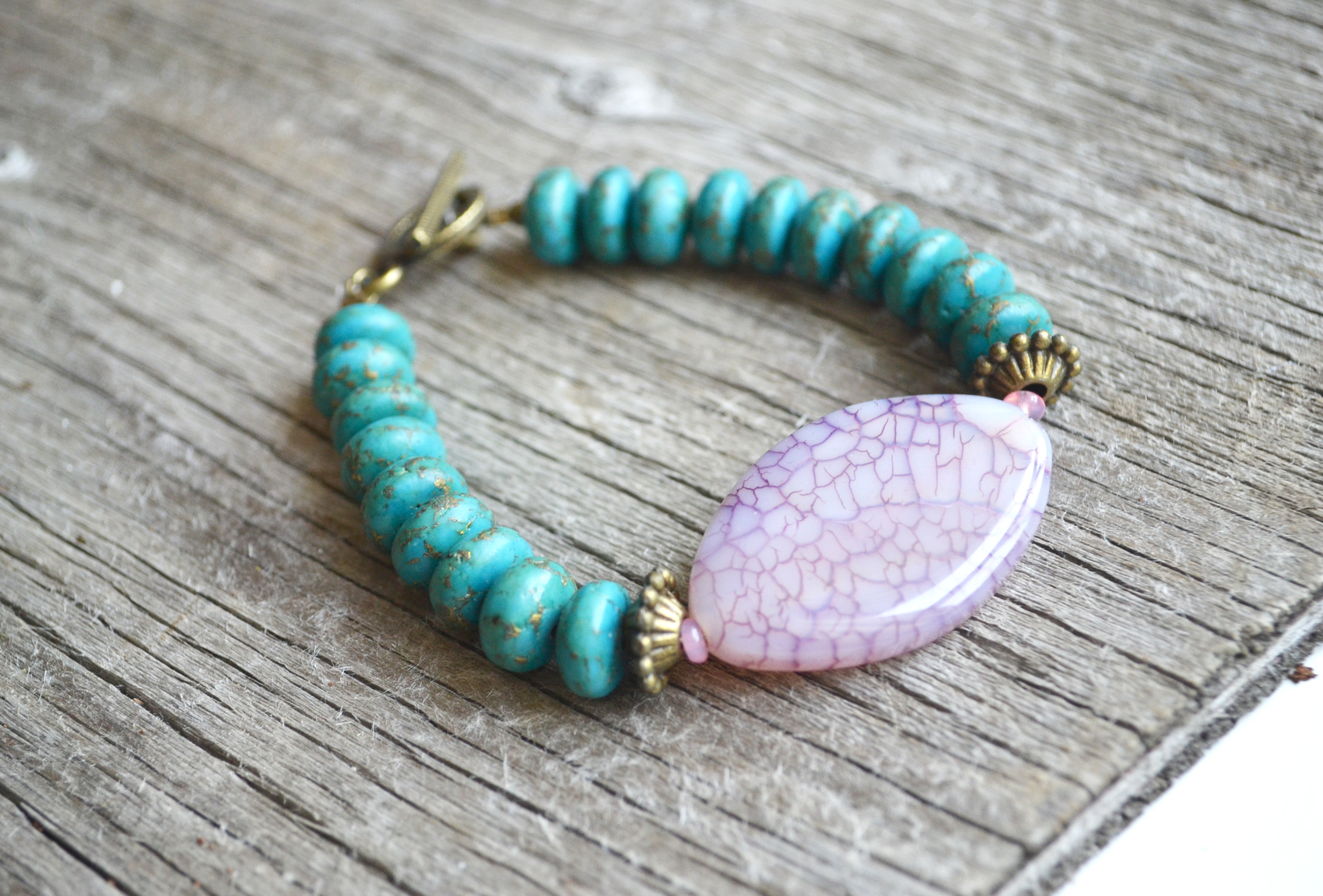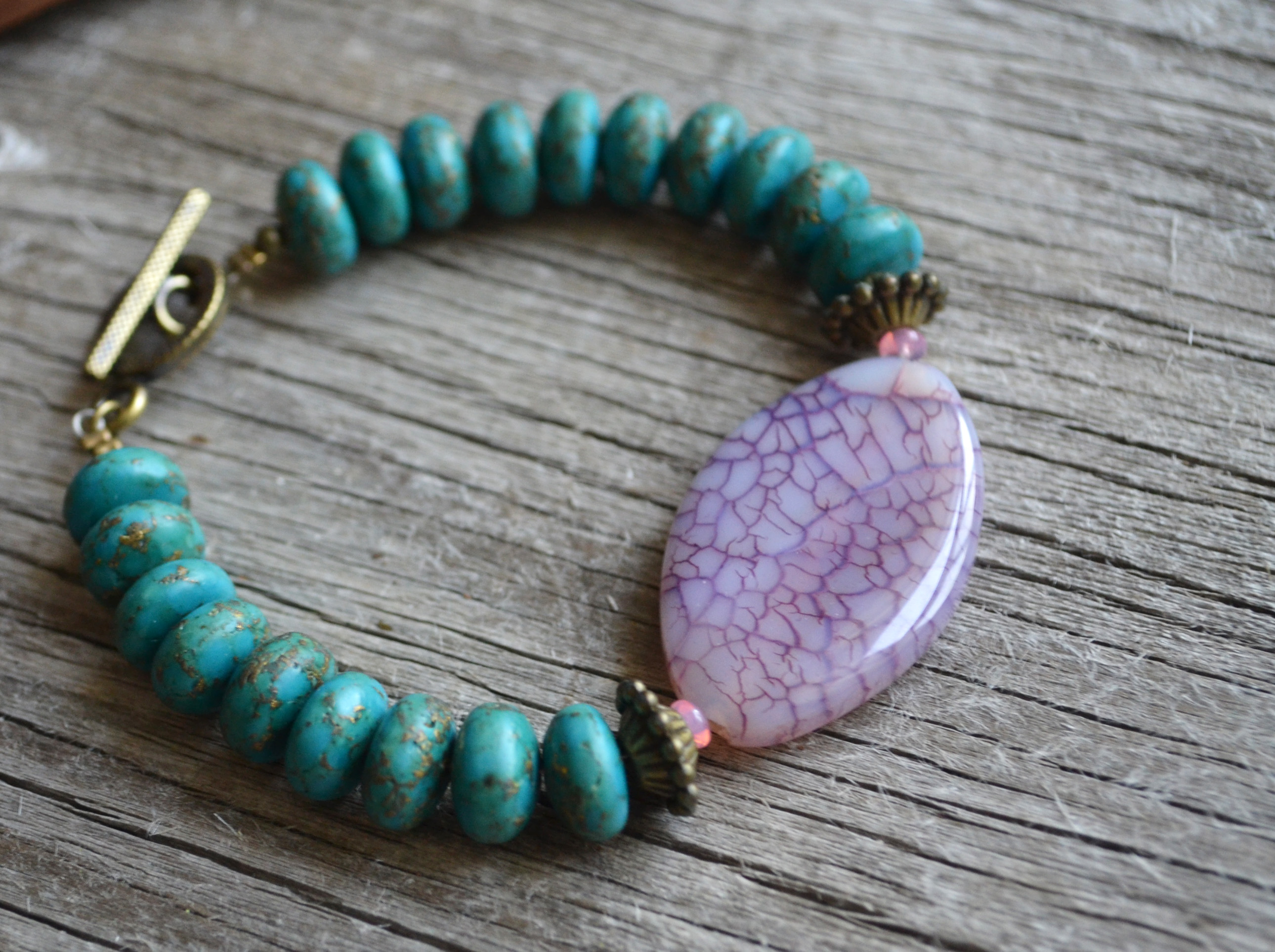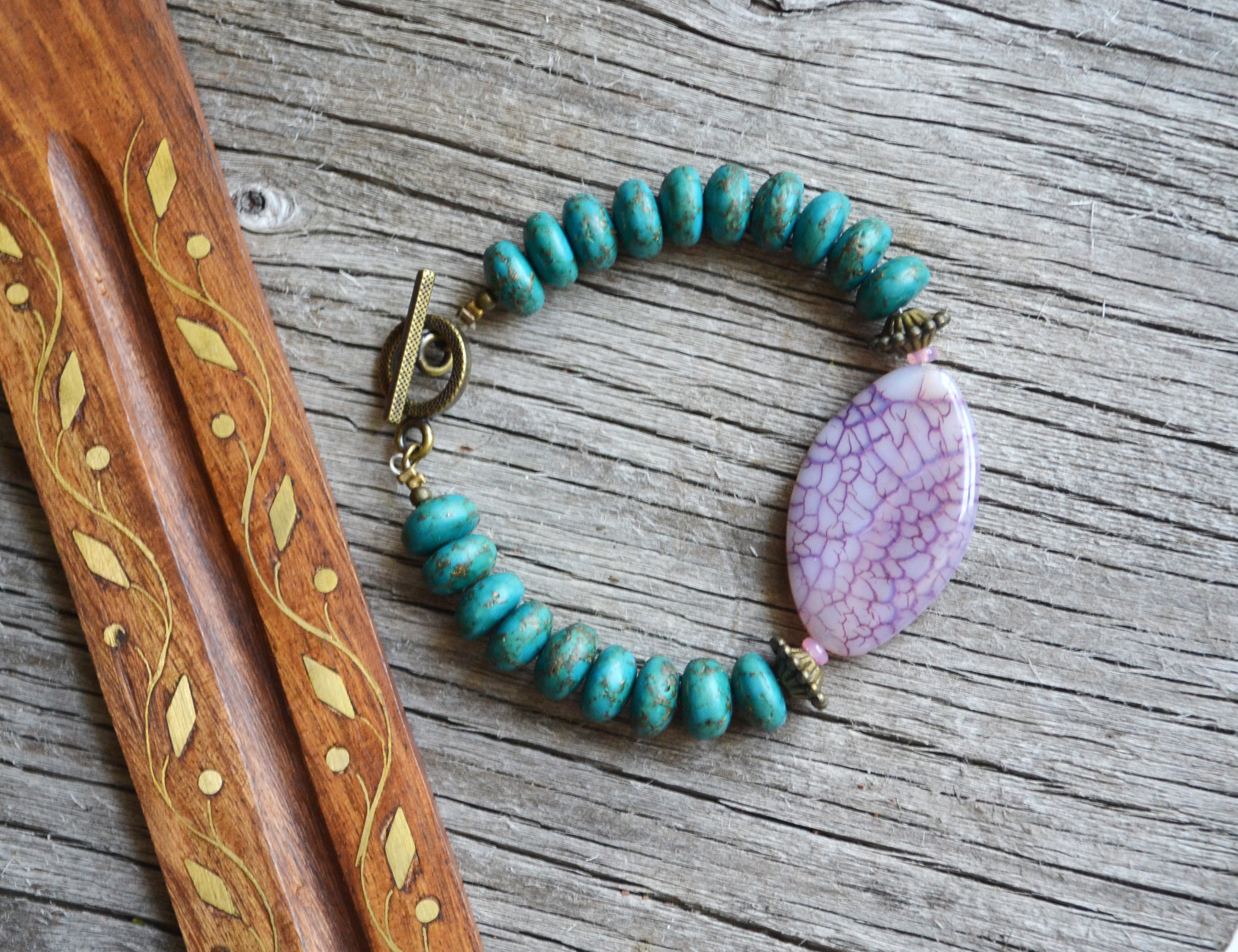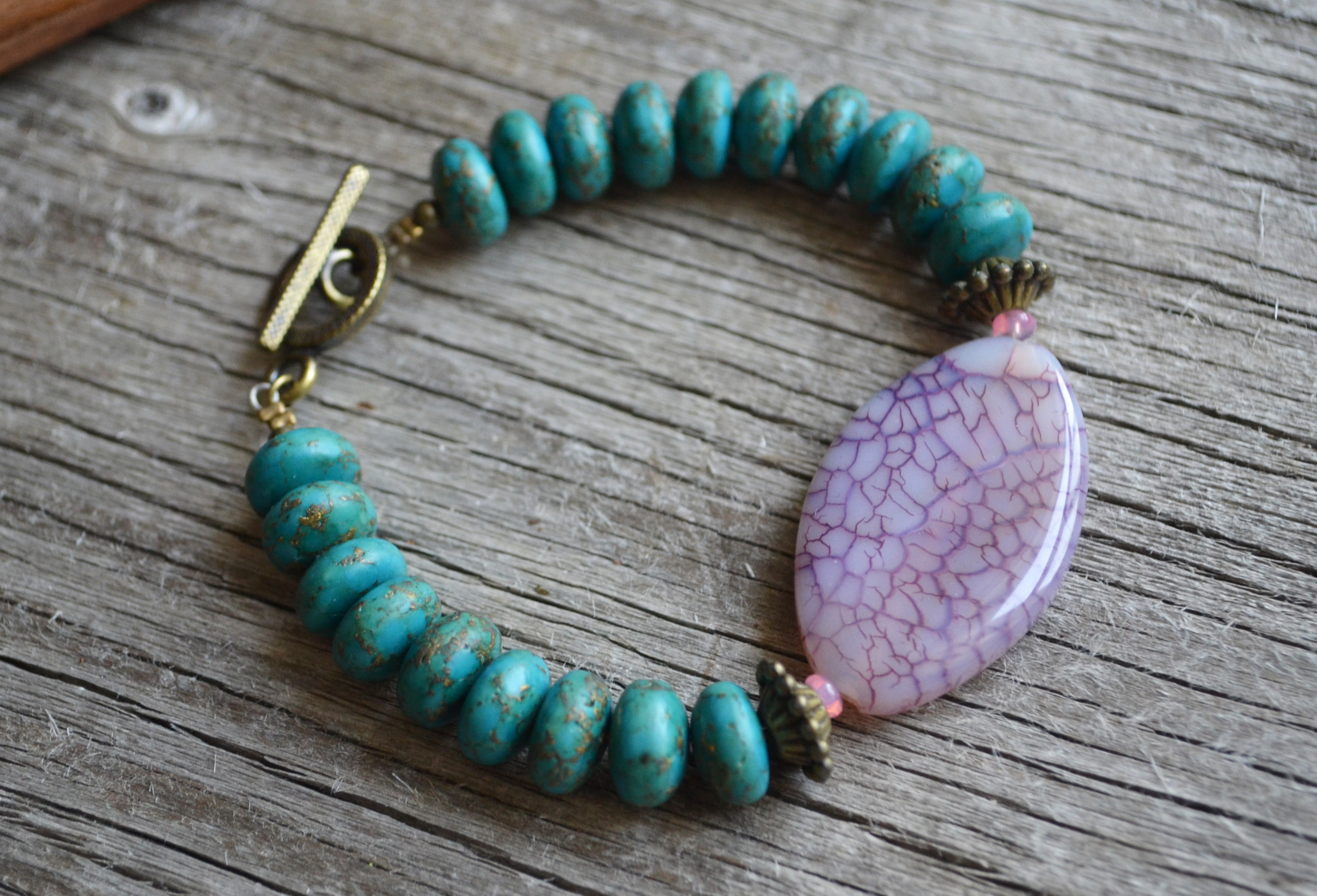 Purple Agate Bracelet, Chunky Stone Bracelet, Purple Agate