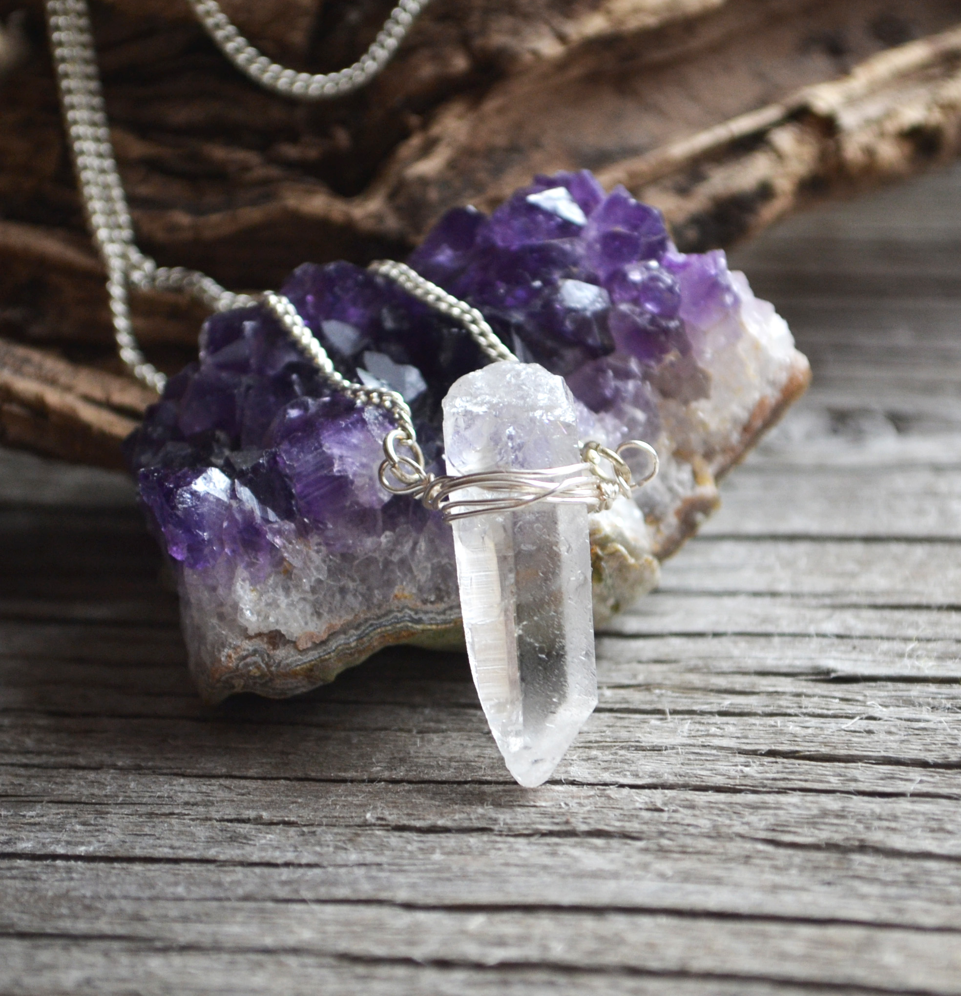 Simple and stunning, this clear crystal point make for a great healing necklace. I have wire wrapped it with silver plated wire. Choose your chain size at checkout. View all of the photos for details, you will receive one clear quartz point similar to the one pictured.