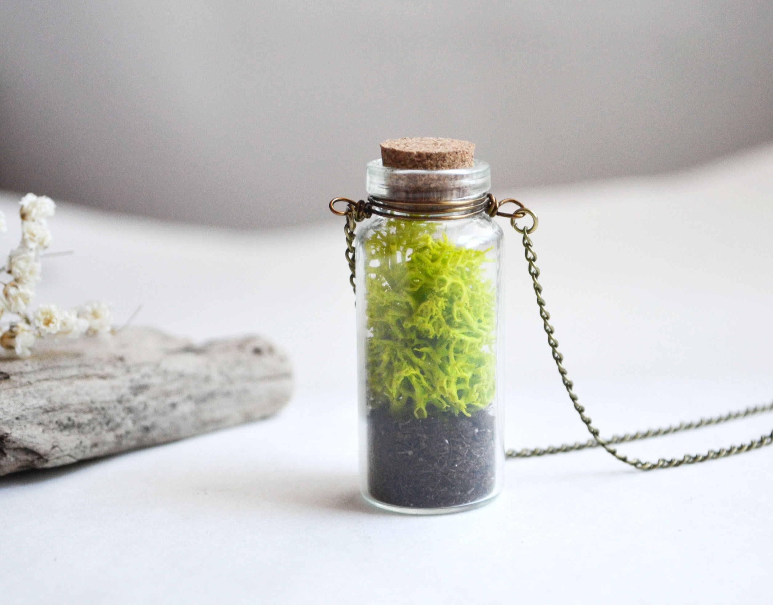 MOSS Necklace, Large Moss Necklace, Nature Lover, Vial Necklace, Glass Vial, Botanical Jewelry