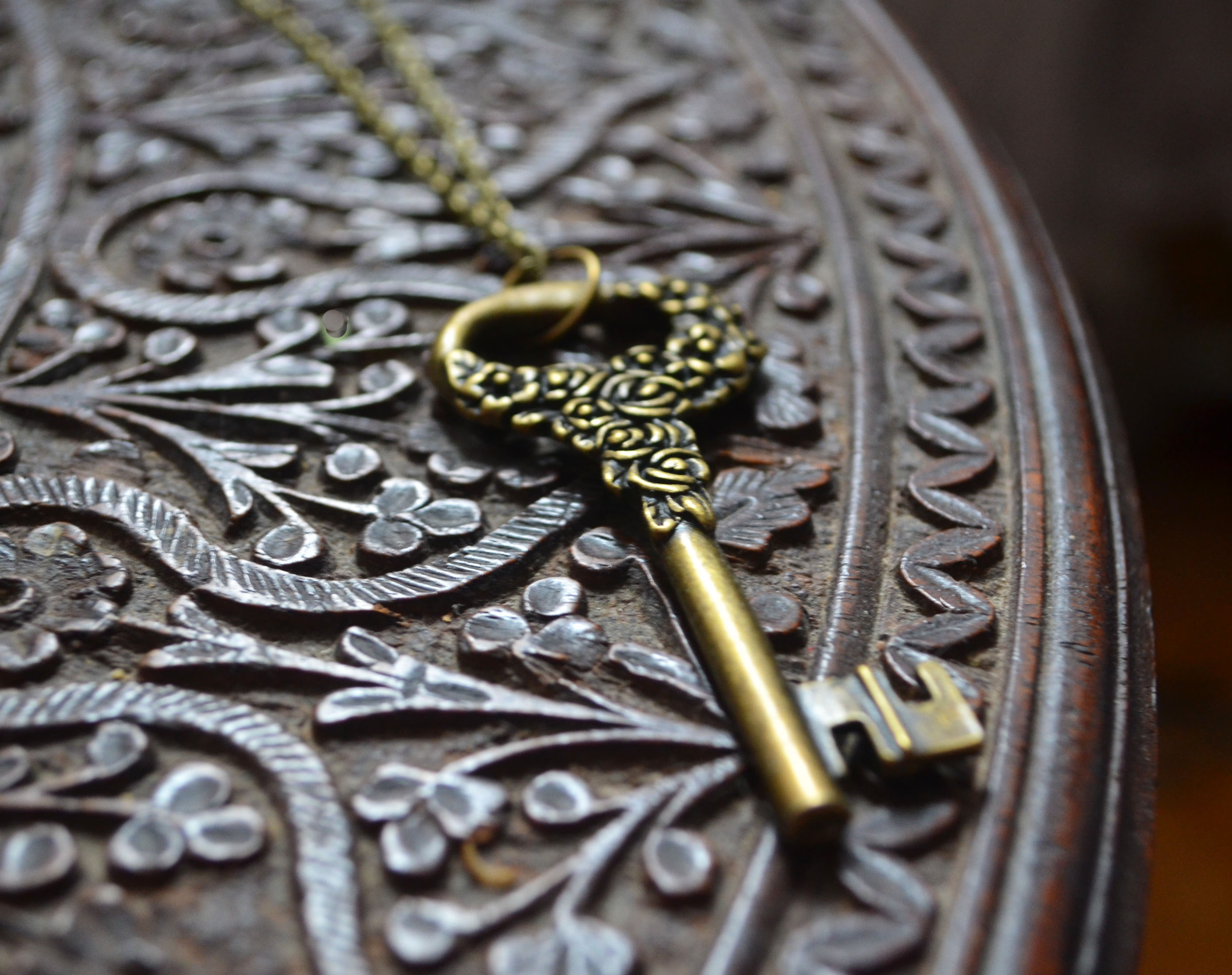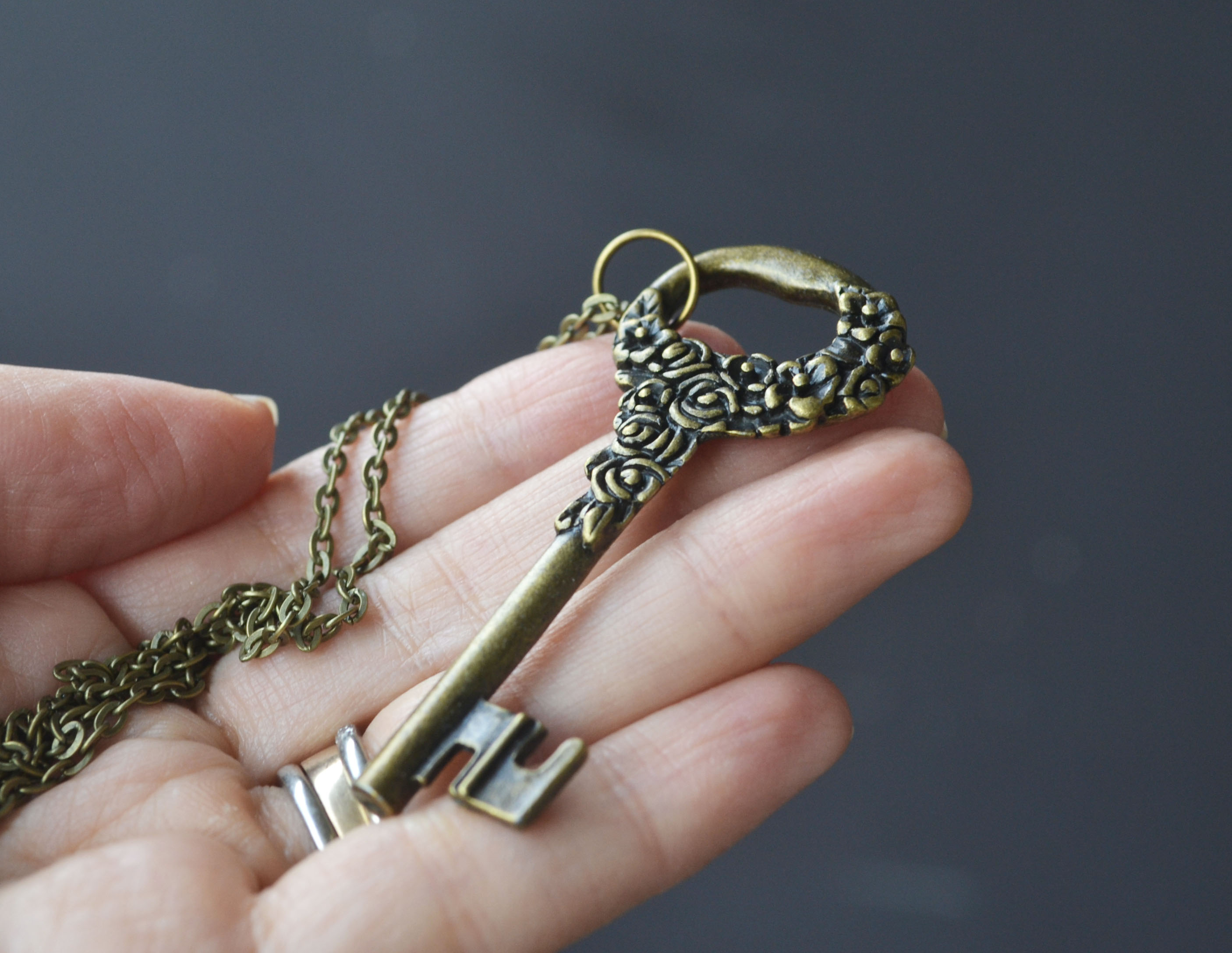 key necklace, Rose Necklace, Skeleton Key, Romantic Gift, Key to My Heart, Canadian Jewelry
