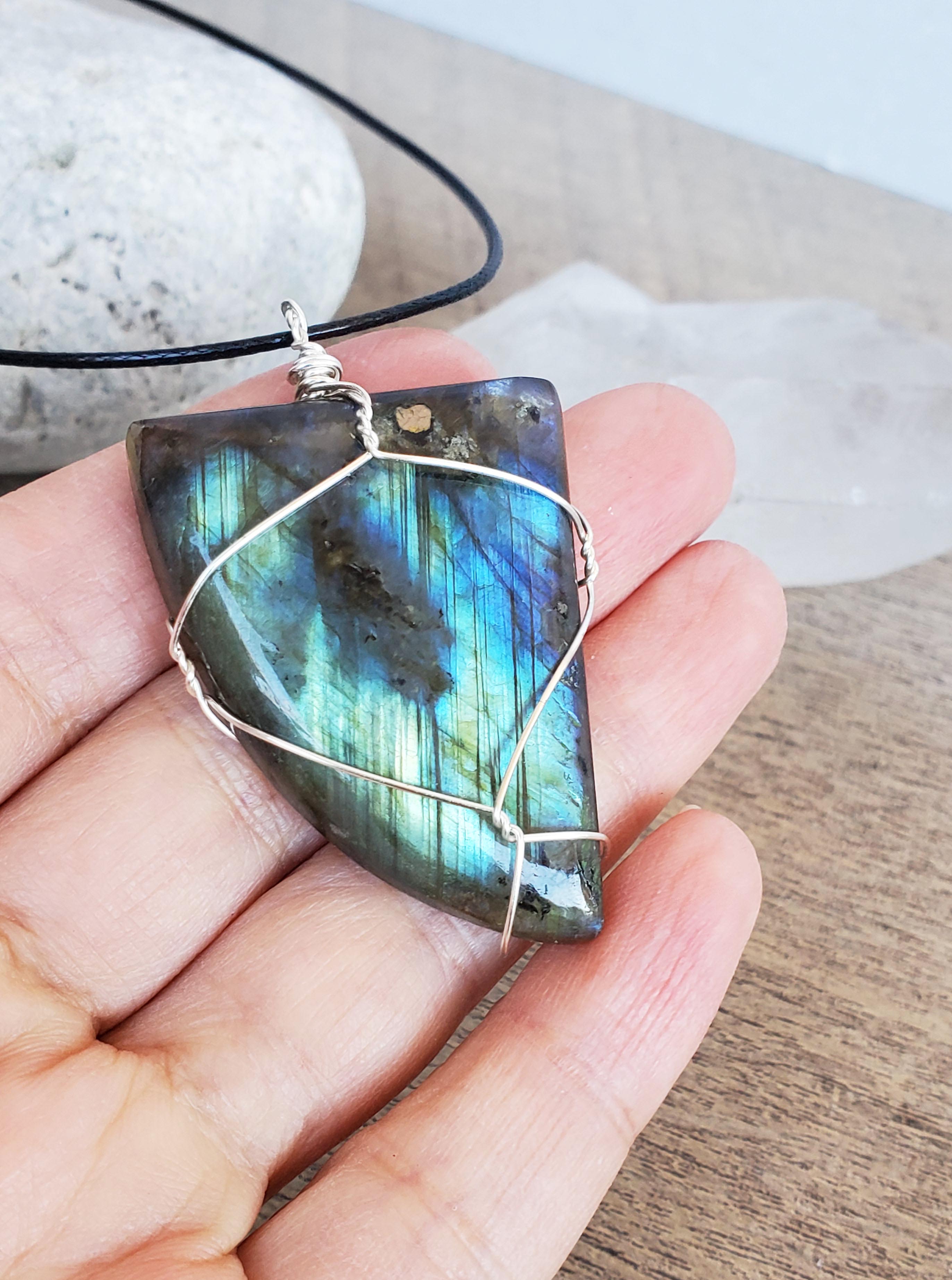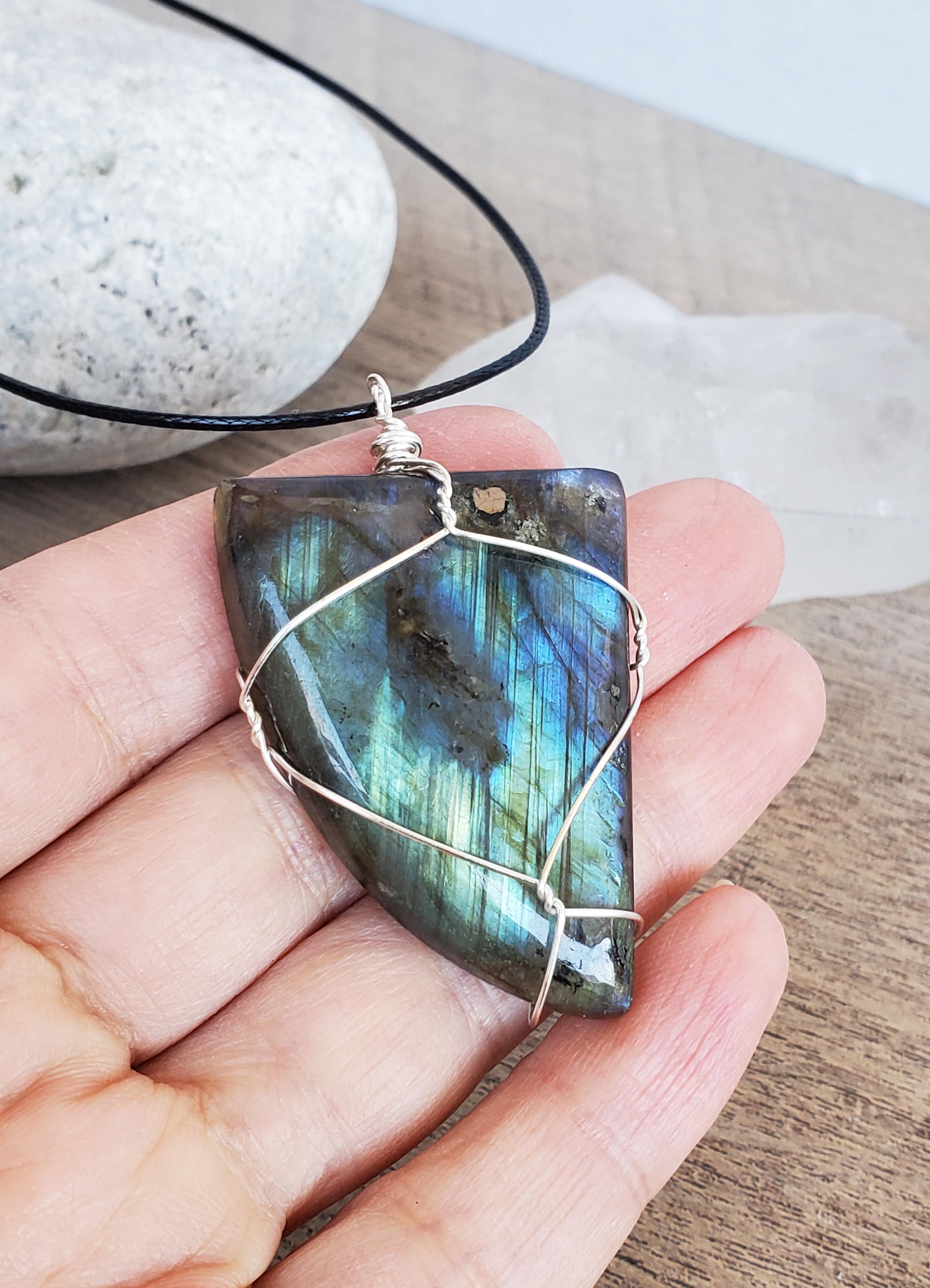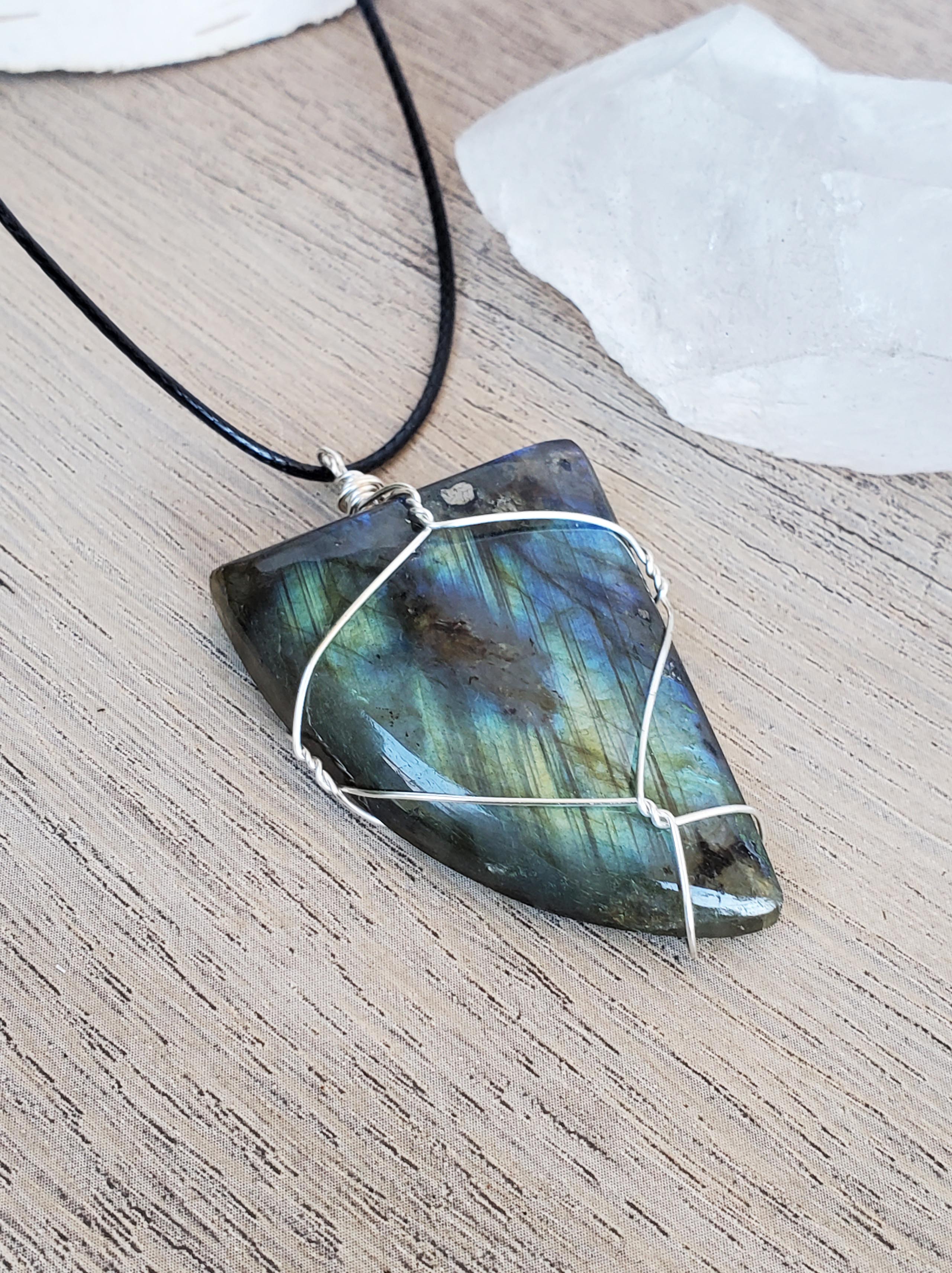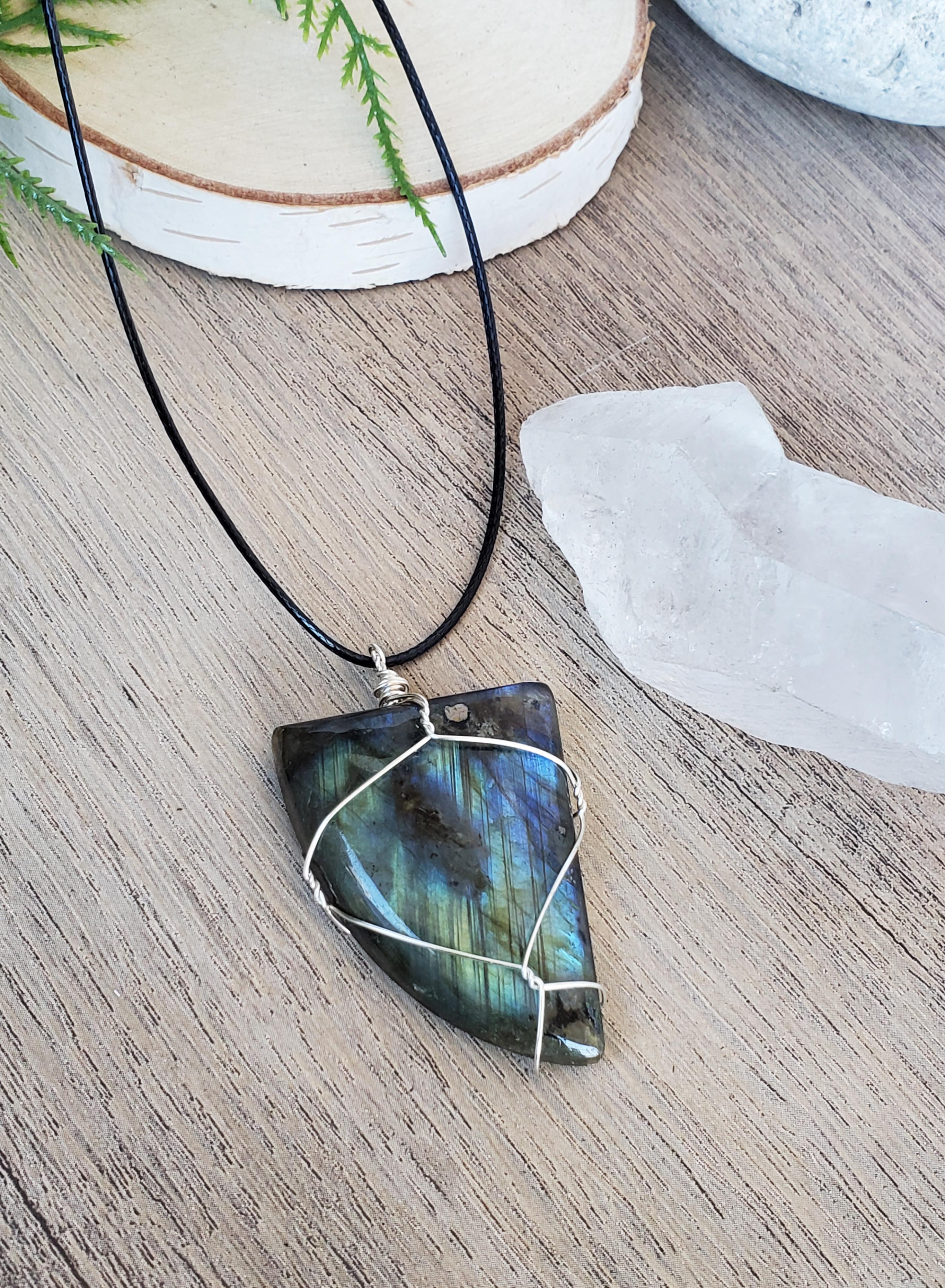 Labradorite Necklace, Unisex Crystal Jewelry Wire Wrapped Pendant, Canadian Jewelry Shop, Spring Jewelry Gift