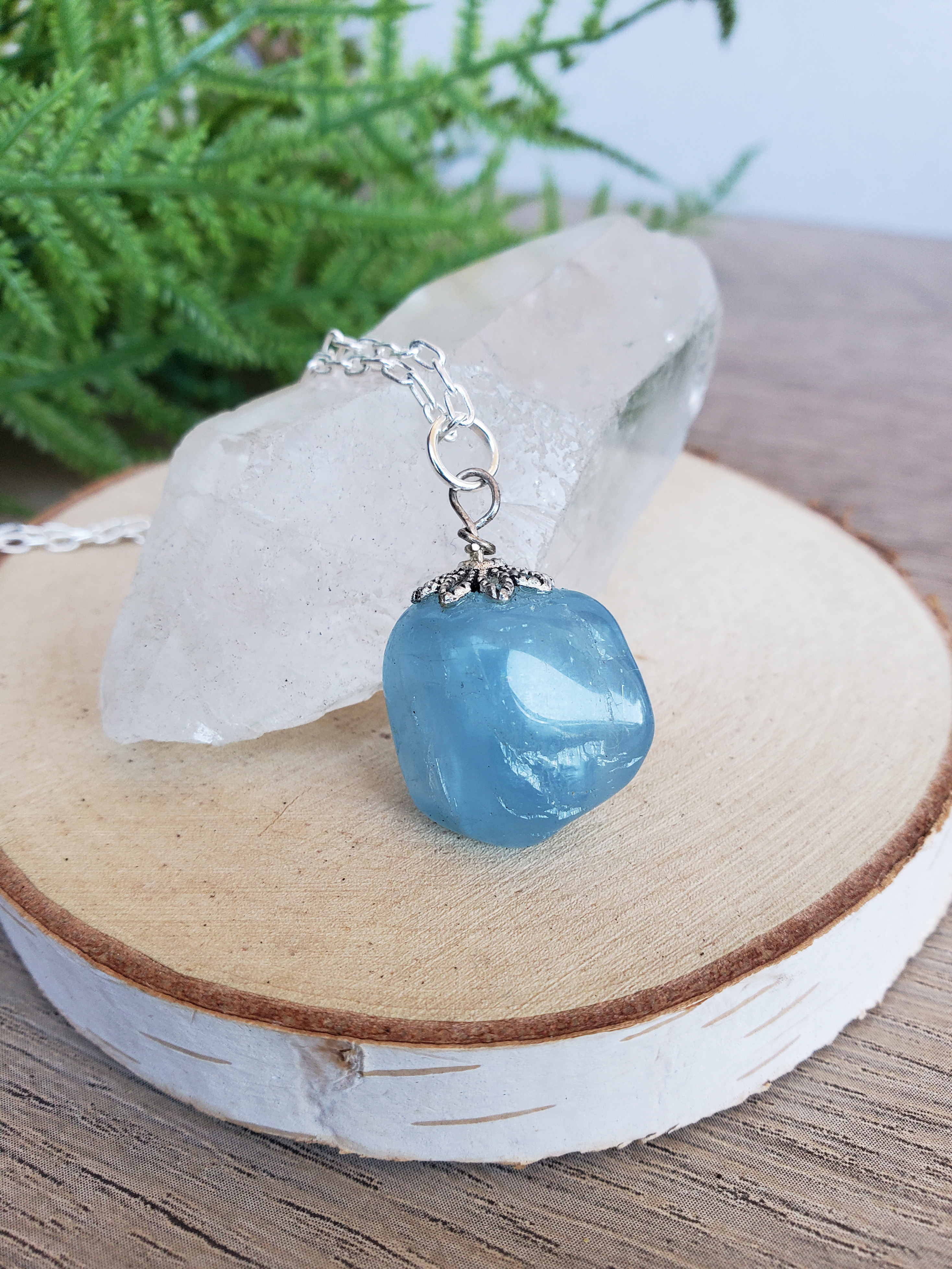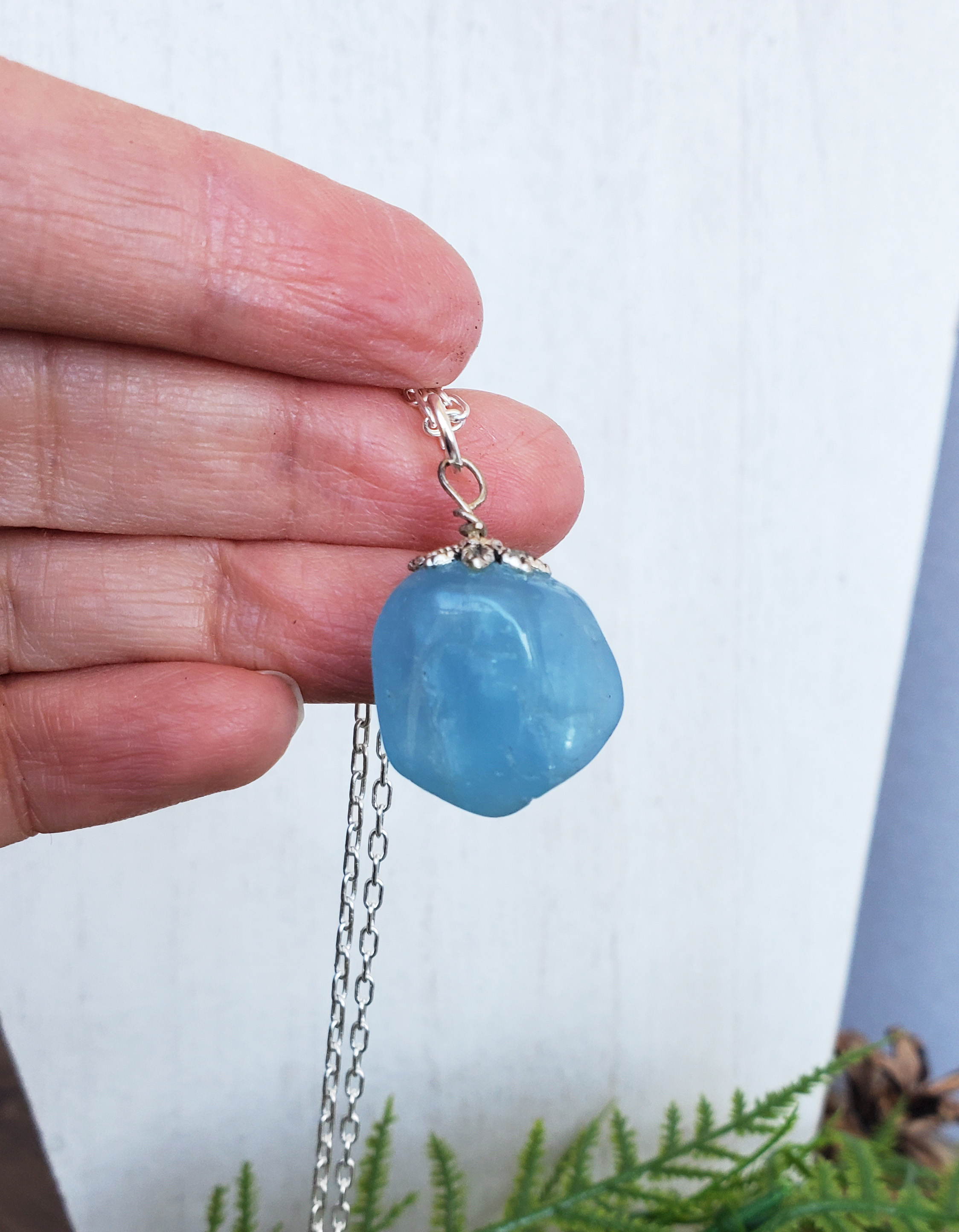 Aquamarine Stone Necklace, Tumbled Stone Necklace, Crystal Aquamarine Jewelry Spring Necklace, Dainty Blue Stone Necklace