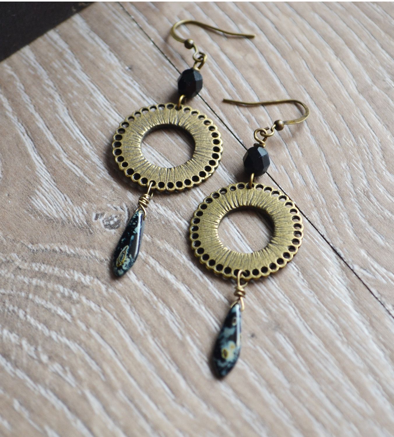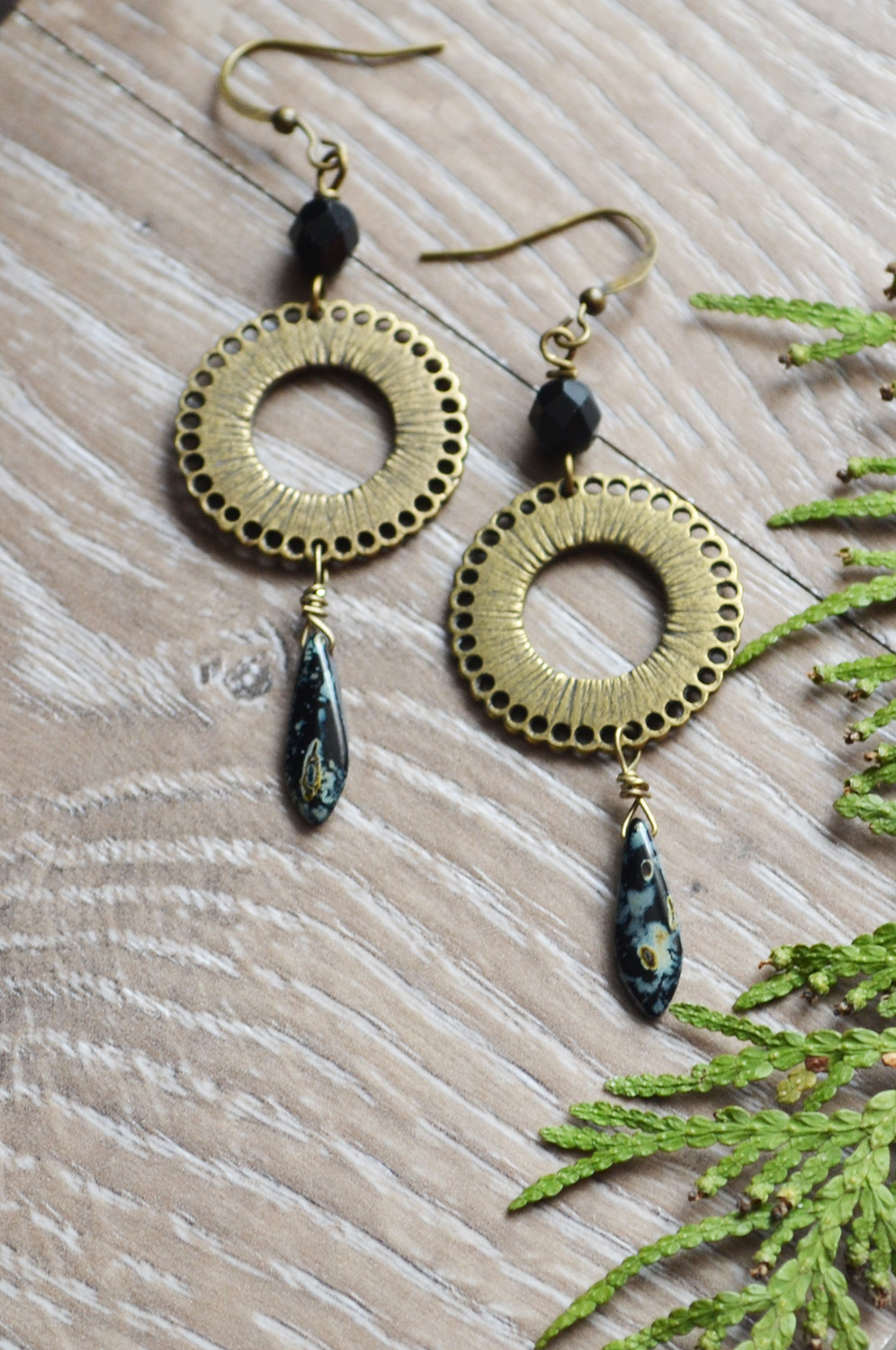 Twilight Dagger Earring, Ornate Brass Earring, Dangle Earrings